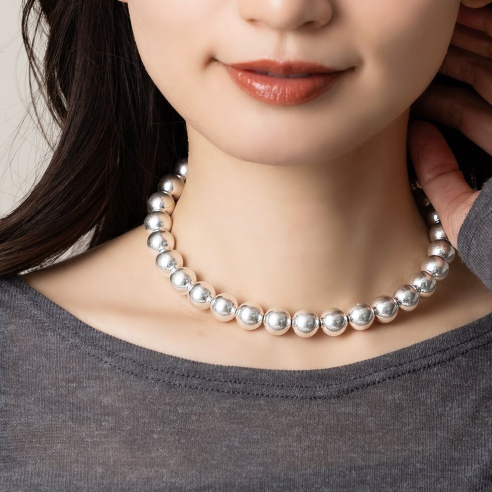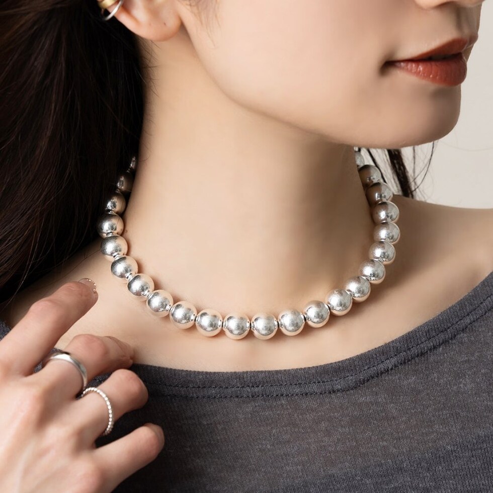 ネックレス レディース チョーカー メタルボール 大粒 スフィア ヴィンテージ調 マット つや消し ボリューム 存在感 cream dot ゆうパケット [シルバー_ワンサイズ]