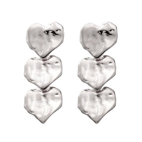 ピアス レディース ハート 3連 2タイプ クラフト調 ヴィンテージ調 メタル 艶 揺れる 変形 歪み スタッド cream dot ゆうパケット [シルバー_ピアス]