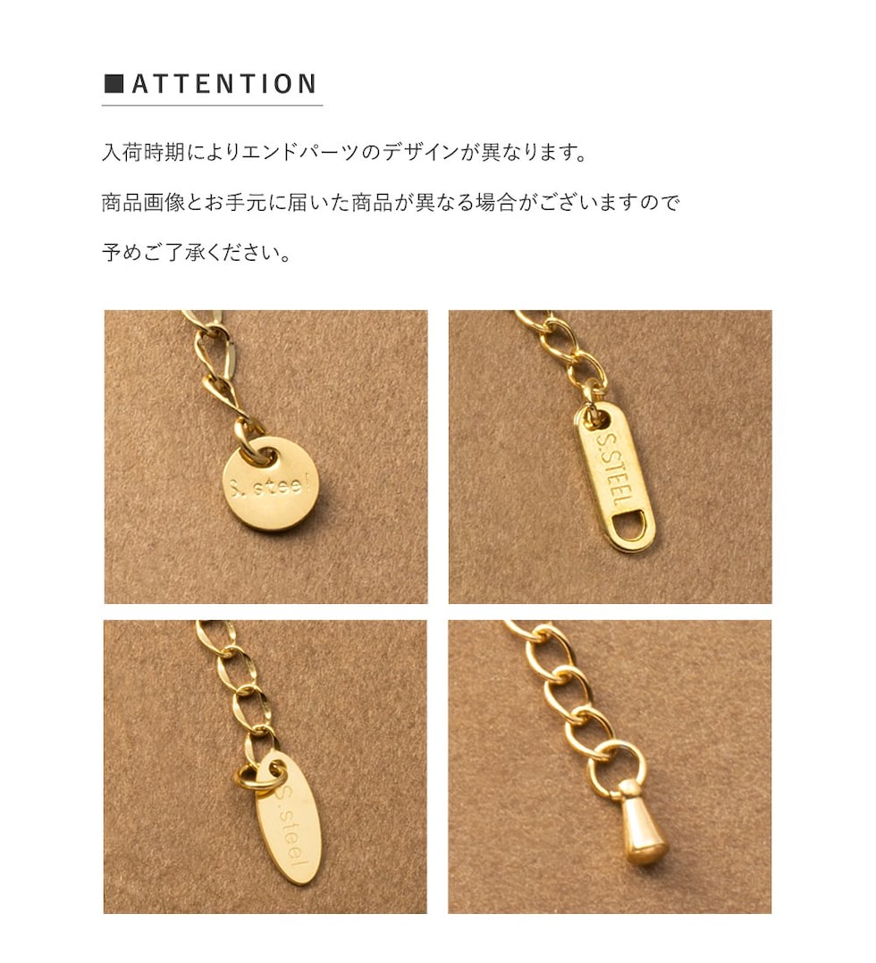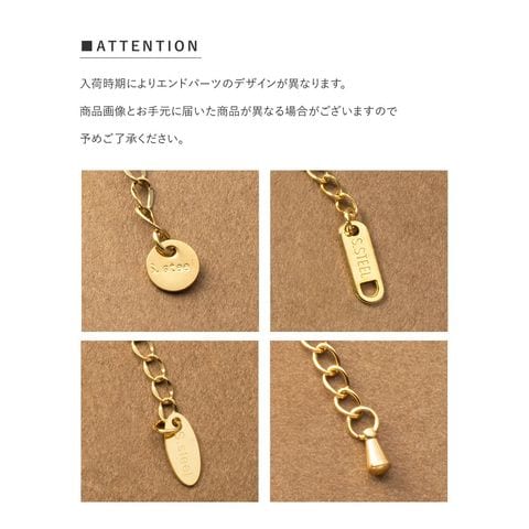 錆びにくいサージカルステンレスを使用。アクセサリーでかぶれやすい敏感肌の方にもオススメな金属アレルギー対応の素材です。