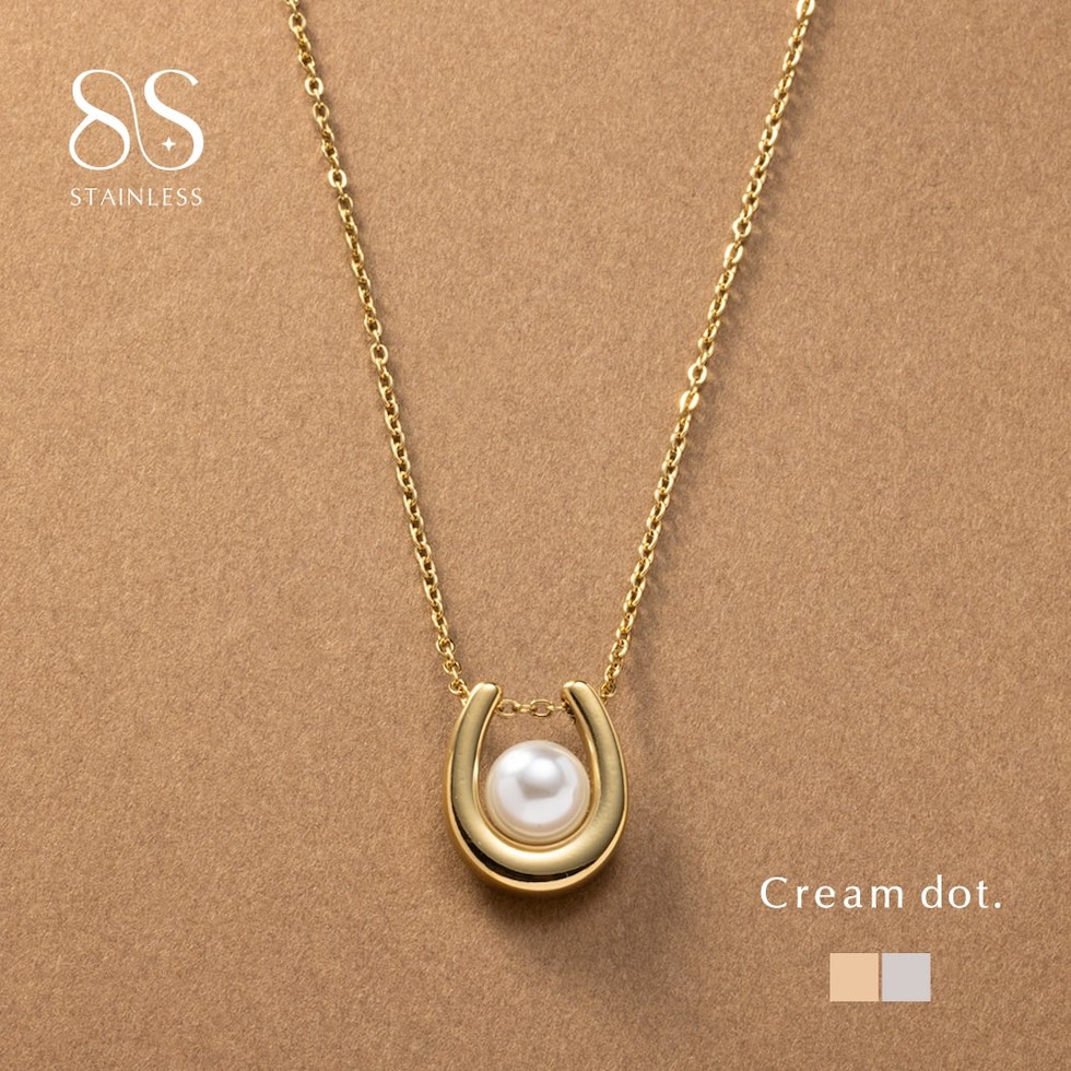 ネックレス ステンレス 金属アレルギー サージカルステンレス レディース 金属アレルギー対応 つけっぱなし ショート チェーン ホースシュー ぷっくり パール U字 馬蹄 メタル cream dot ゆうパケット [シルバー_ワンサイズ]
