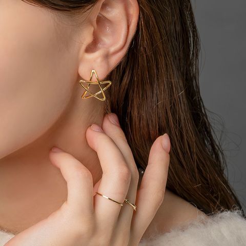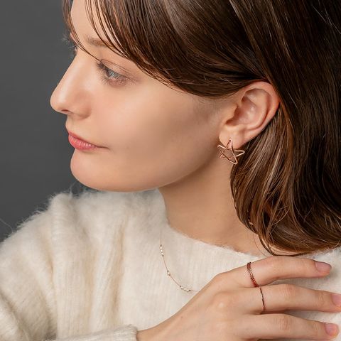 柔らかくカーブした手書き風のスターピアス。透かしデザインで主張しすぎず大人っぽく仕上がります◎程よい存在感でお洋服にも合わせやすく、お顔周りを印象的づけてくれそう。