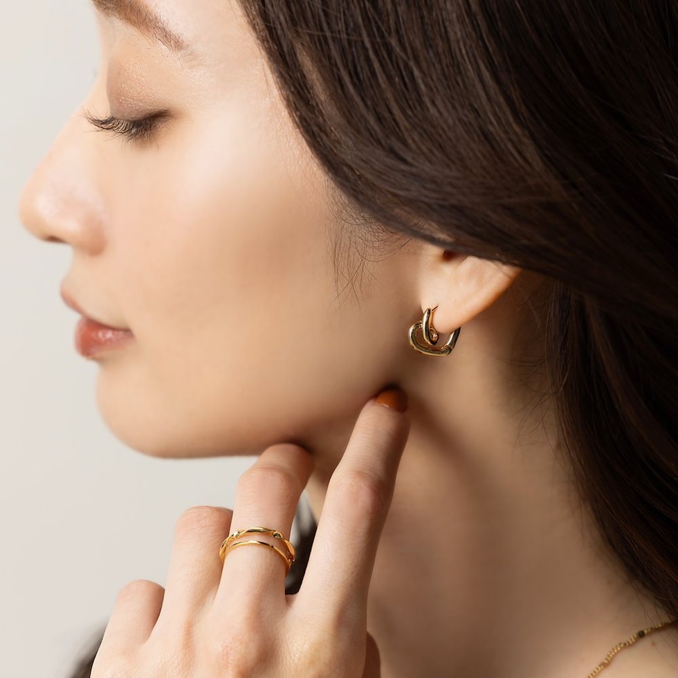 立体フォルムが可愛らしいトレンドのハートピアス。程よい大きさと目を惹く個性的なデザインで、甘くなりすぎずレディライクな抜け感をプラスします。着脱も楽ちんなキャッチレスタイプなので忙しい朝にも最適。引っ掛かりも少ないので落としにくいのも嬉しいポイントです。