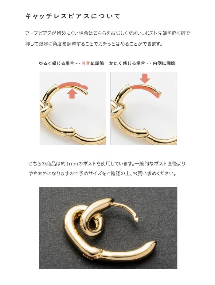 ピアス レディース 隠れハート 変形 くるりんぱ メタル キャッチレス 中折れ 開閉式 ワンタッチ cream dot ゆうパケット [シルバー_ピアス]