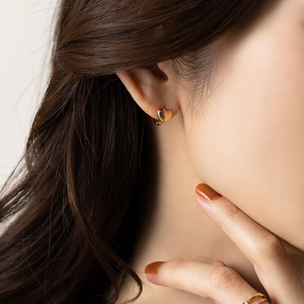ぷっくりシルエットが可愛いハートモチーフの開閉式キャッチレスピアス。控えめなサイズ感が甘すぎない大人の可愛さを演出◎ワンポイントとして使いやすく、幅広いシーンで活躍してくれるアイテムです。