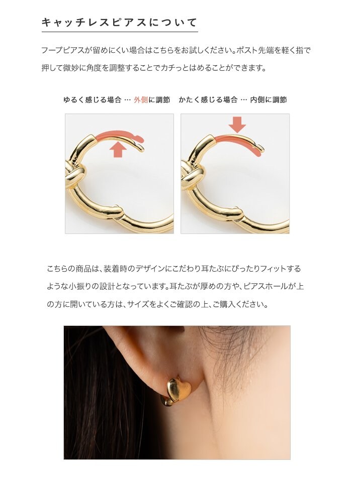 ピアス レディース フープ ハート ぷっくり 中折れ キャッチレス 開閉式 小さめ 小ぶり ハートモチーフ cream dot ゆうパケット [ゴールド_ピアス]