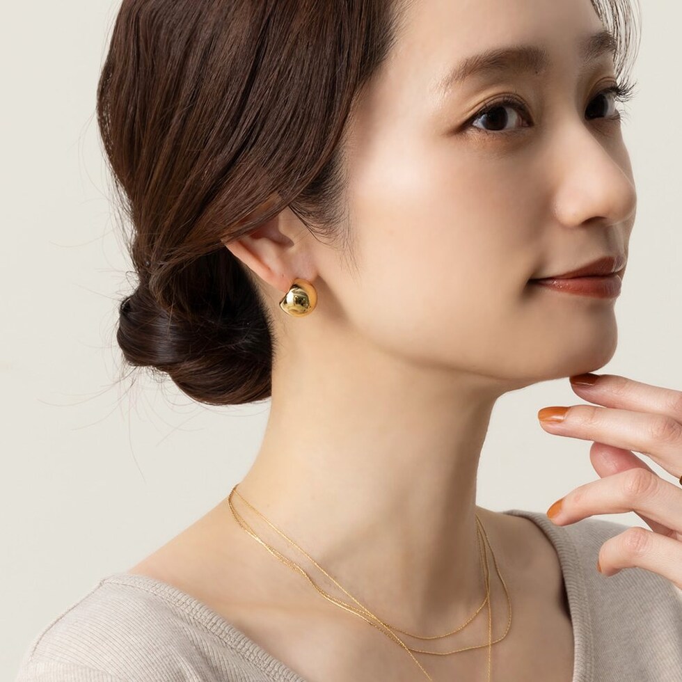 耳元に沿うようなぷっくりとしたモチーフが印象的なピアス/イヤリング。見た目以上に軽い付け心地でデイリーに取り入れやすく、洗練された顔周りを演出します。コーデを引き締めアクセントを添えてくれるひと品。