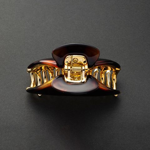 べっ甲風のマーブル模様とゴールドコームを組み合わせたバンスクリップ。しなやかで美しい艶感が高見えするひと品。髪束をしっかりホールドするフォルムで、さっとまとめたヘアもオシャレでこなれた印象に仕上げます。