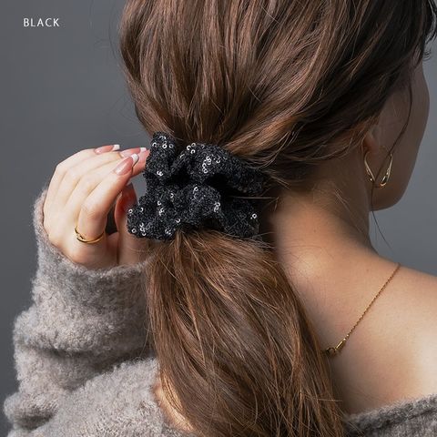 繊細に煌めくスパンコールシュシュ。ボリューム感たっぷりなシュシュ&贅沢なスパンコールで後ろ姿に華やぎを添えるひと品。サッと着けるだけでキラキラ&洗練スタイルに◎気分まで上げてくれるオススメのアイテムです。