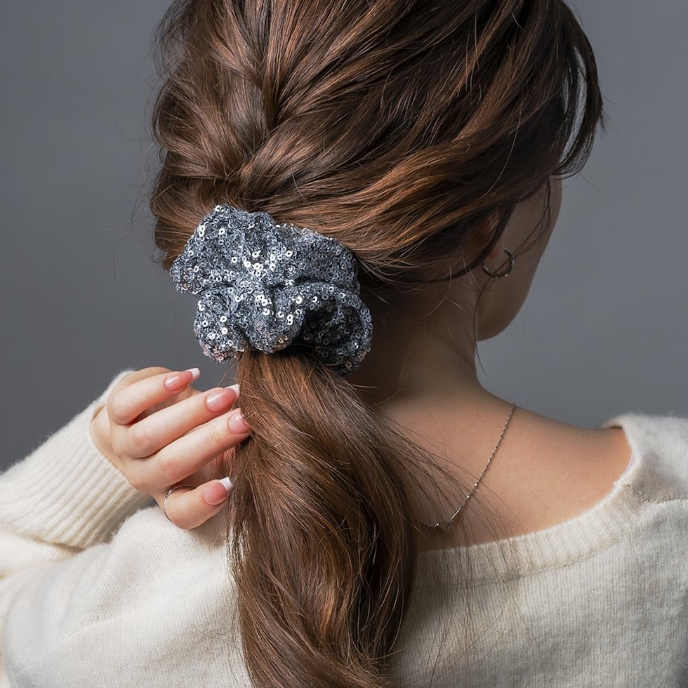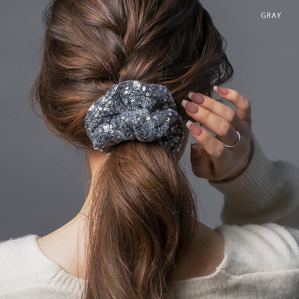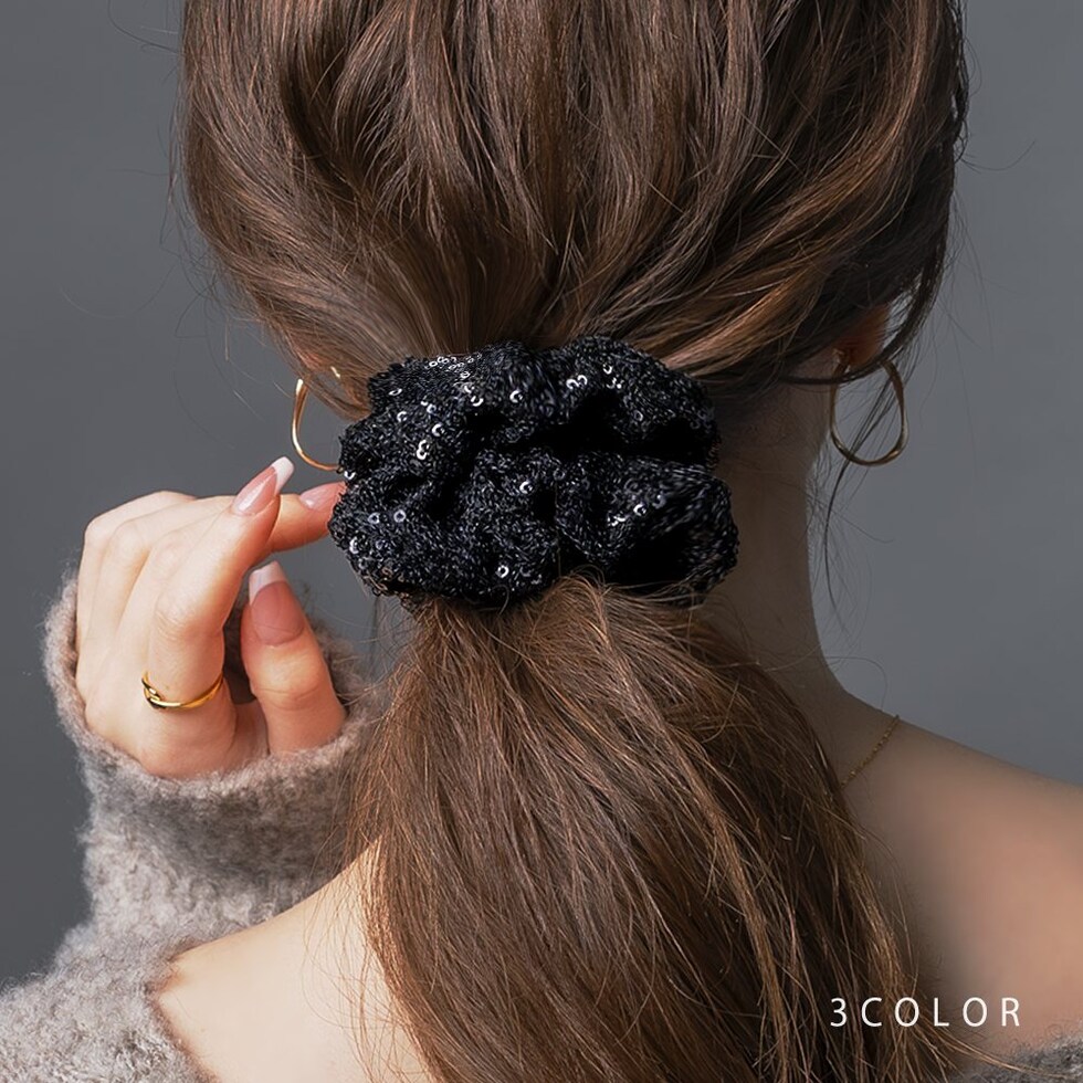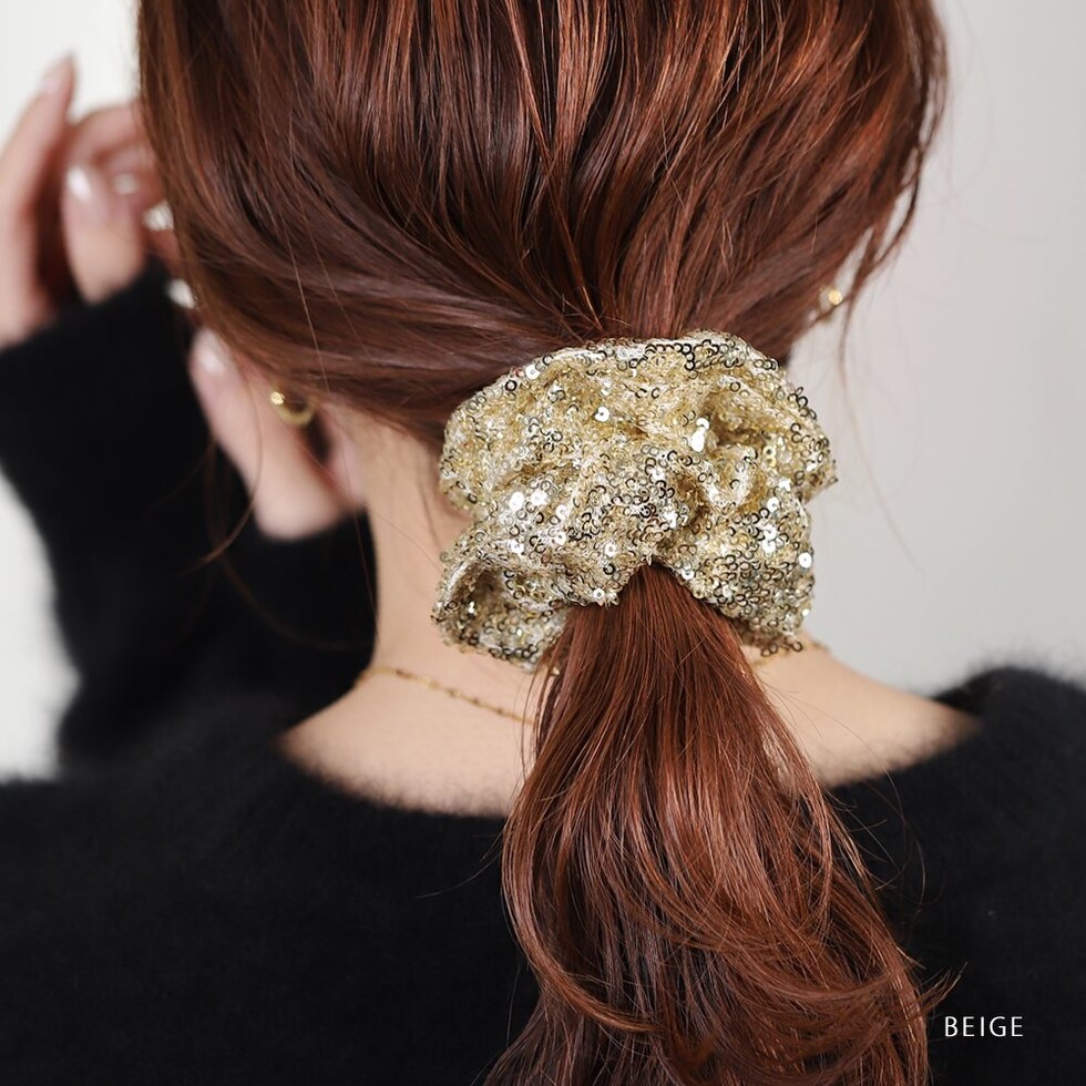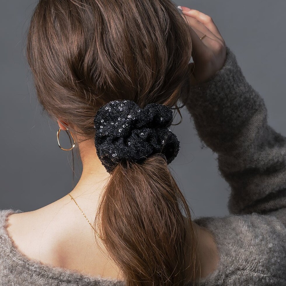 繊細に煌めくスパンコールシュシュ。ボリューム感たっぷりなシュシュ&贅沢なスパンコールで後ろ姿に華やぎを添えるひと品。サッと着けるだけでキラキラ&洗練スタイルに◎気分まで上げてくれるオススメのアイテムです。