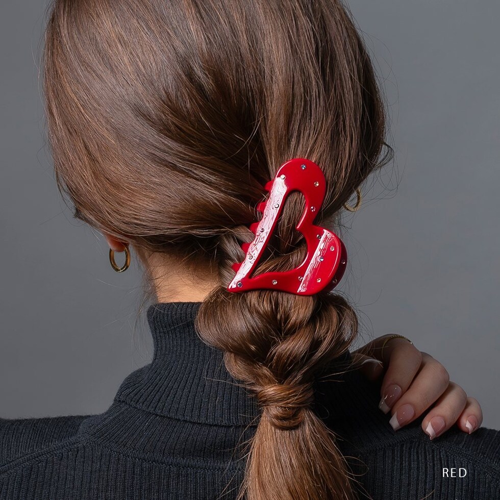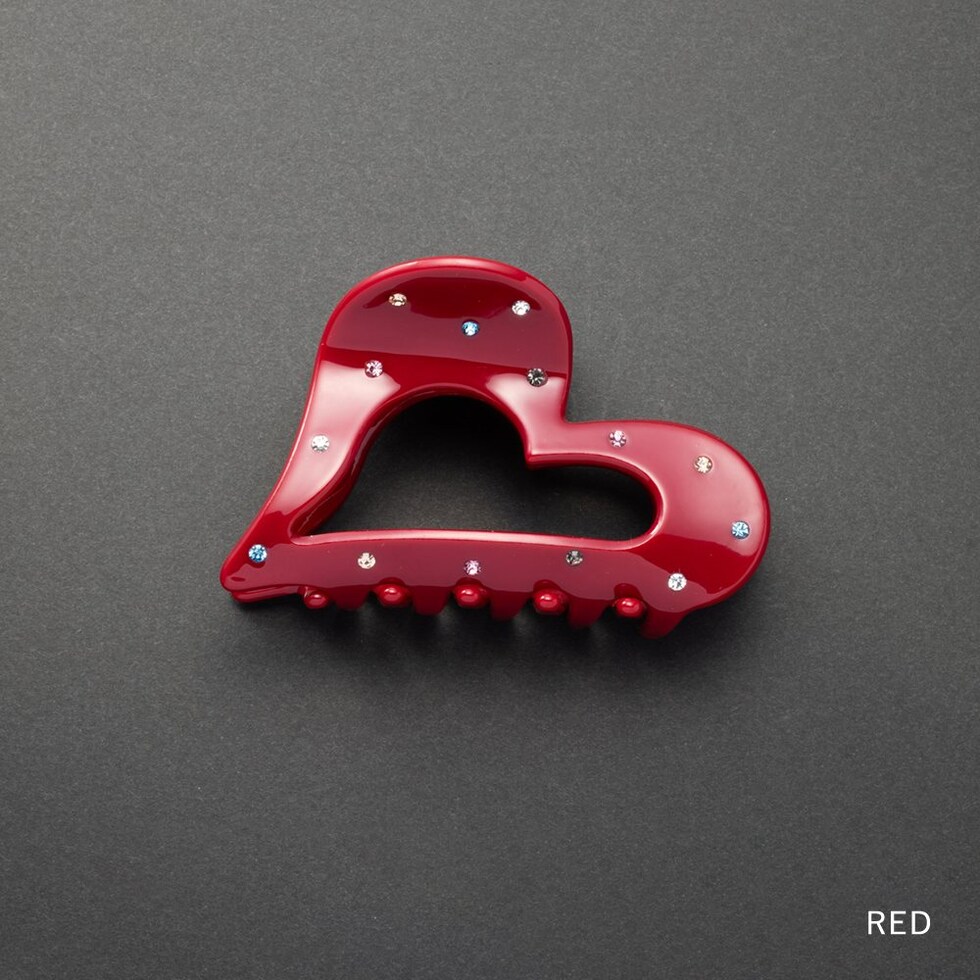 ヘアアクセサリー レディース バンスクリップ ヘアクリップ ハート フレーム 変形 ビジュー ドット マルチカラー 挟むだけ 簡単 しっかり留まる 髪留め まとめ髪 cream dot 定形外郵便 [レッド_ワンサイズ]