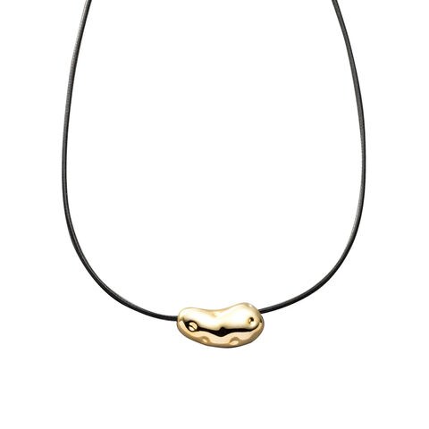 ニュアンス感たっぷりなビーンズメタルのレザーコードネックレス。“ゆがみ”の効いたメタルとトレンドのレザーコードが相性バツグンなひと品。普段のコーデを格上げしてくれるトレンドライクなアイテムです。