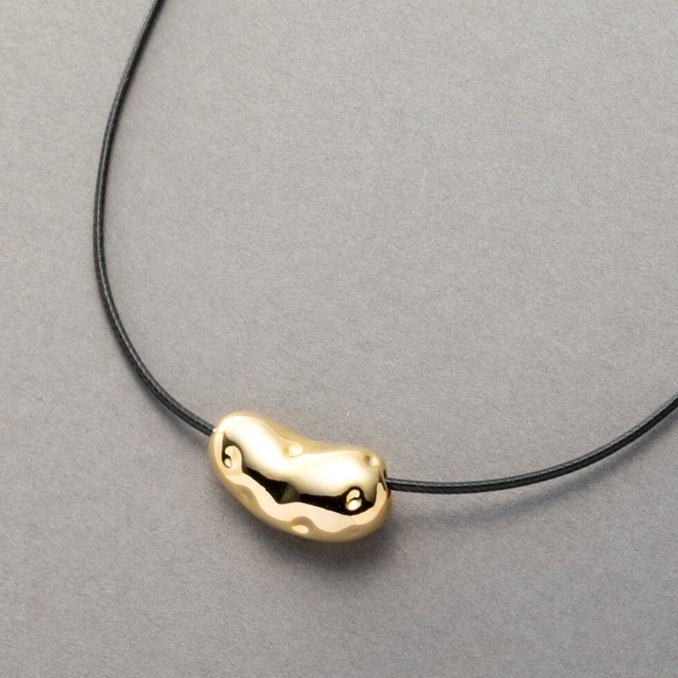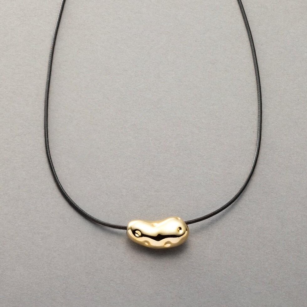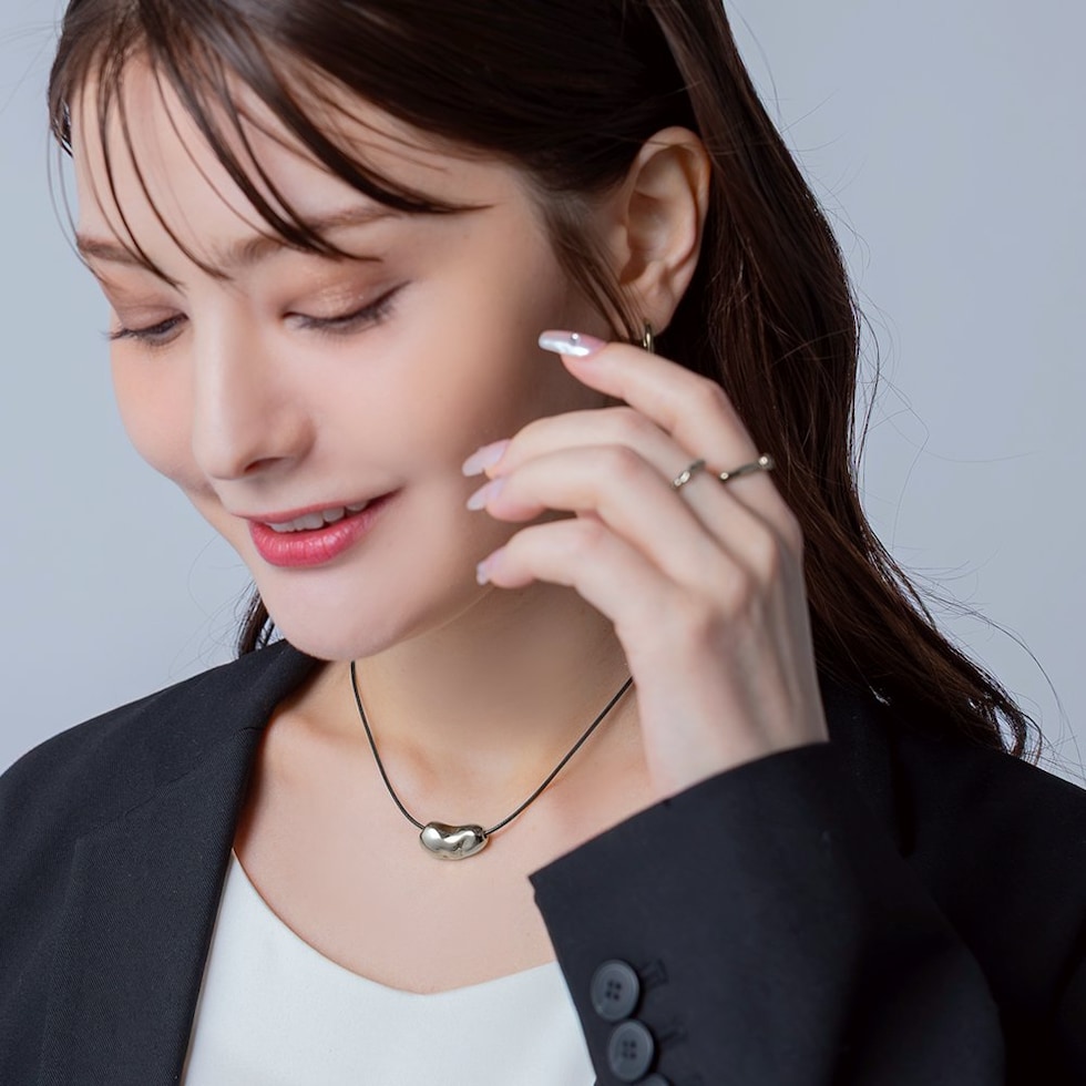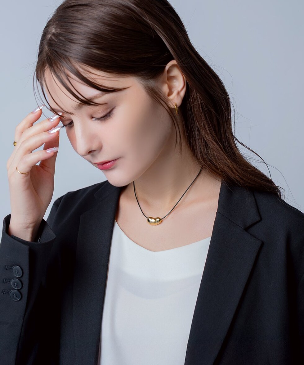ニュアンス感たっぷりなビーンズメタルのレザーコードネックレス。“ゆがみ”の効いたメタルとトレンドのレザーコードが相性バツグンなひと品。普段のコーデを格上げしてくれるトレンドライクなアイテムです。