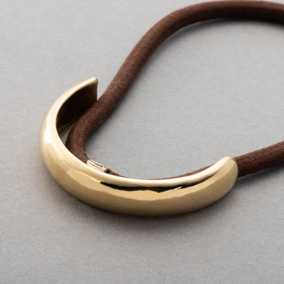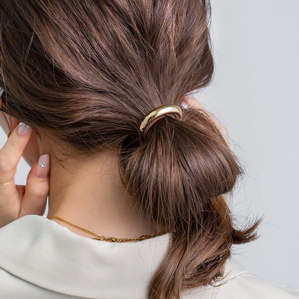 結び目に沿うシンプルなメタルラインがこなれ感たっぷりなヘアゴム。小ぶりで使いやすいサイジングとアレンジに沿うシルエットが大人っぽい◎どんなシーンでも使える洗練デザインでデイリーに活躍しそう。