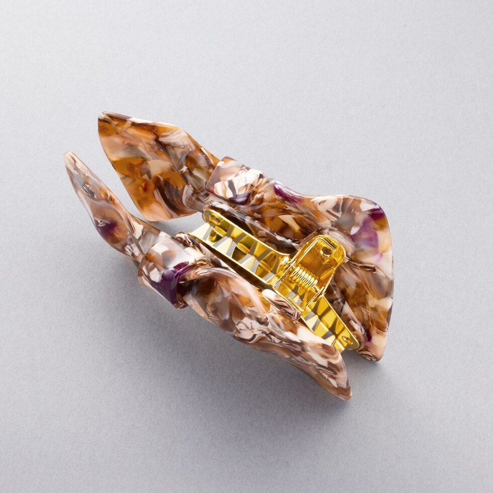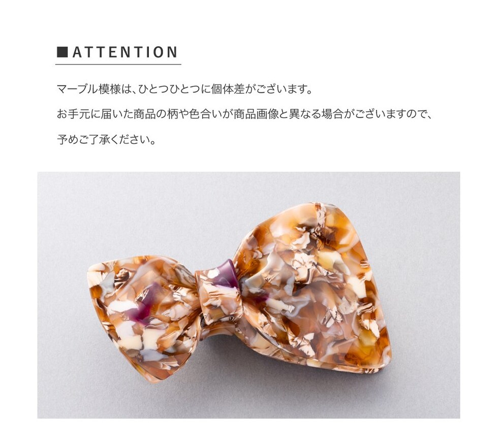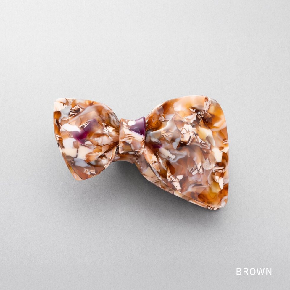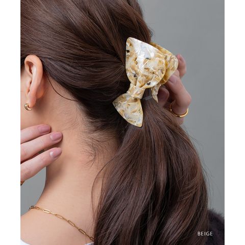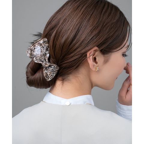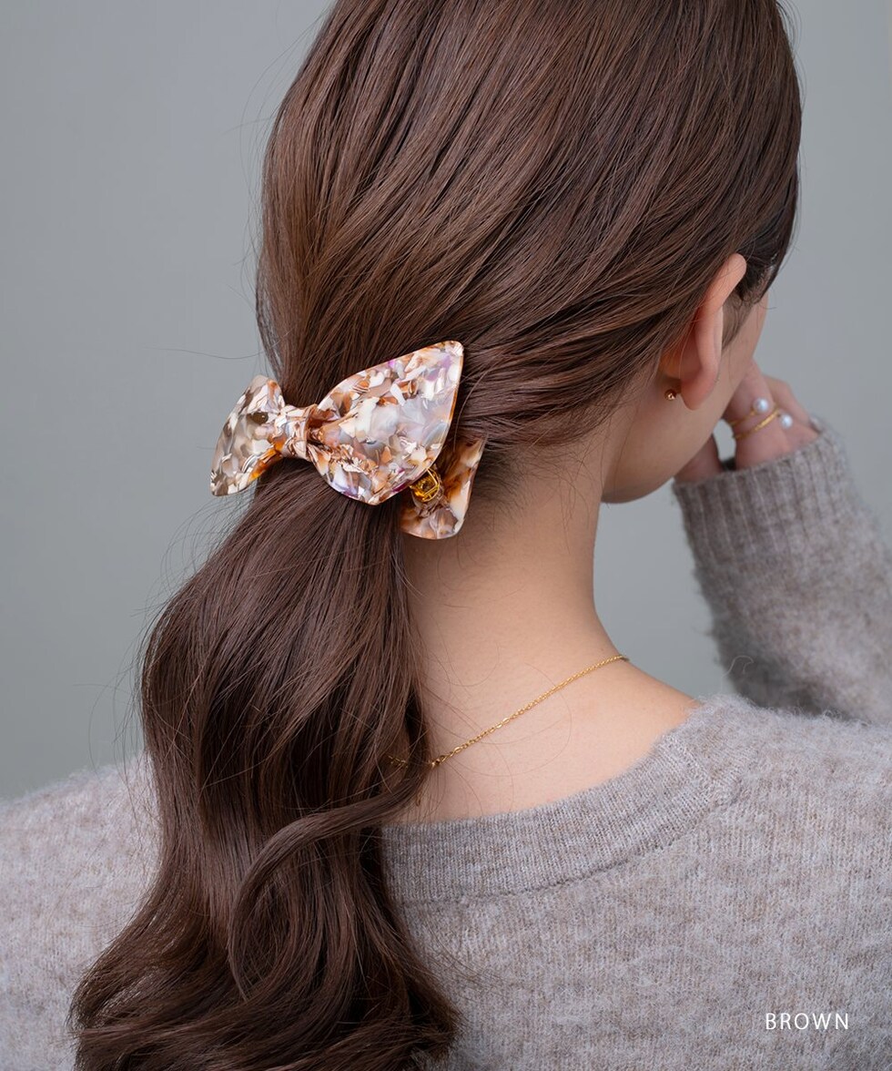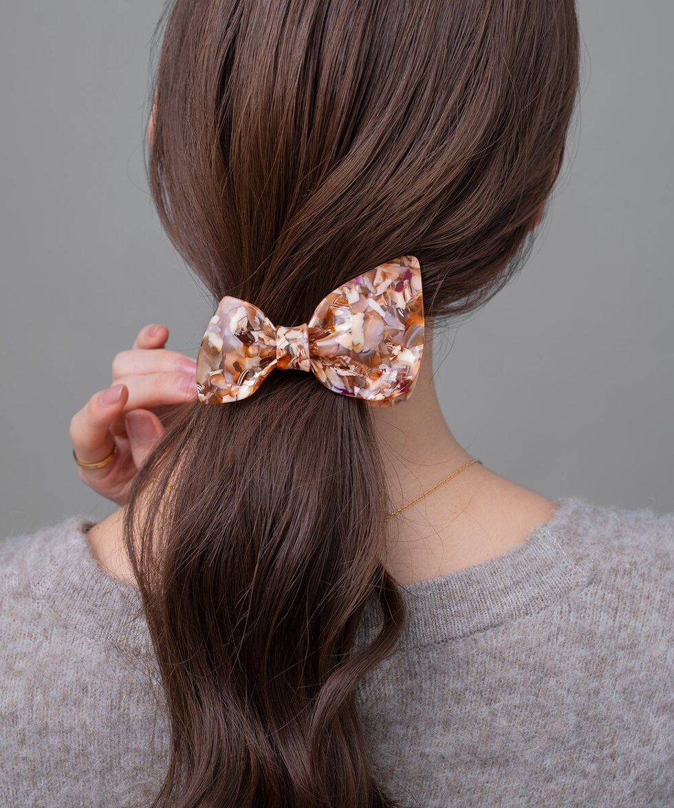 子供っぽくなりがちなリボンモチーフでも、厳選したニュアンスマーブルカラーで甘さひかえめな大人の可愛さを演出。ラフなまとめ髪に添えるだけでこなれヘアにアップデート♪