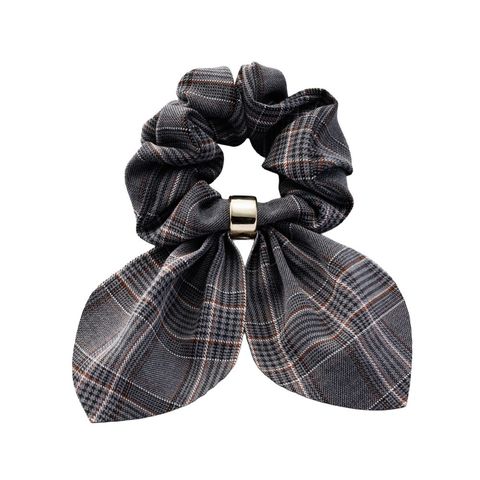 ヘアアクセサリー レディース シュシュ スカーフリボン グレンチェック柄 メタル ヘアゴム ヘアアクセ ヘアアレンジ 簡単 まとめ髪 髪留め 大きめ ボリューム cream dot ゆうパケット [D:グレー×レッド_ワンサイズ]