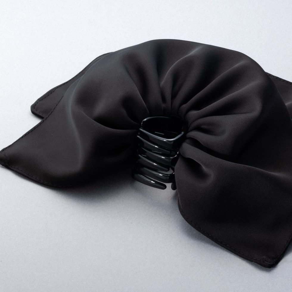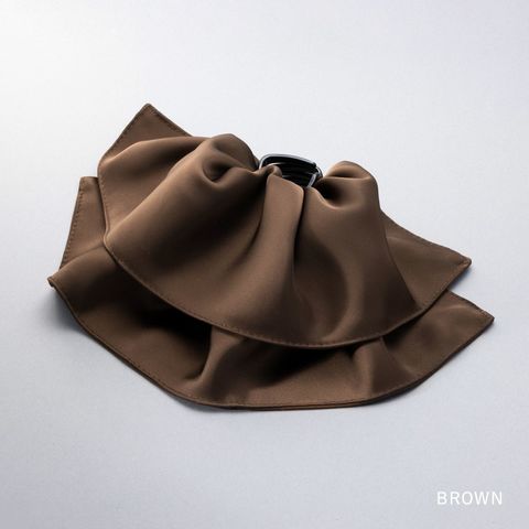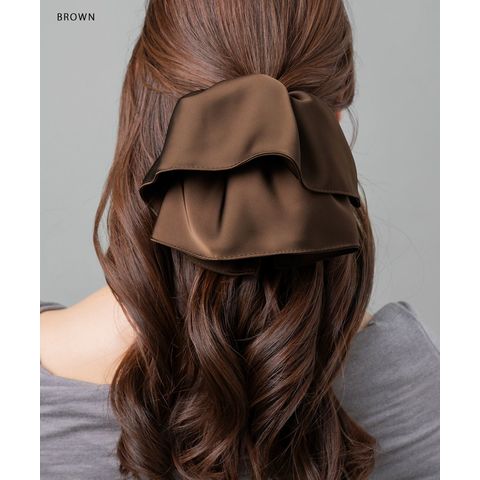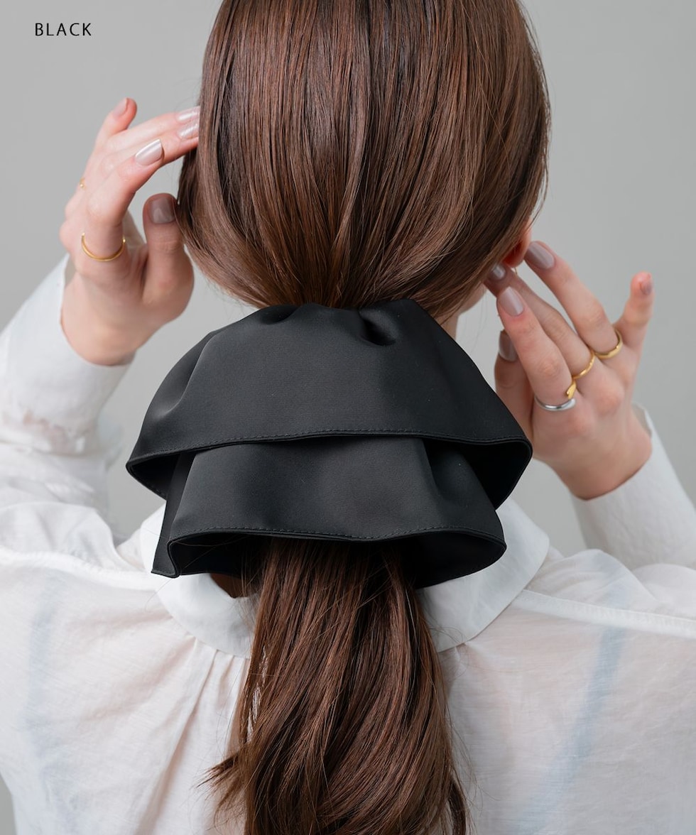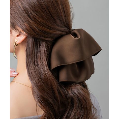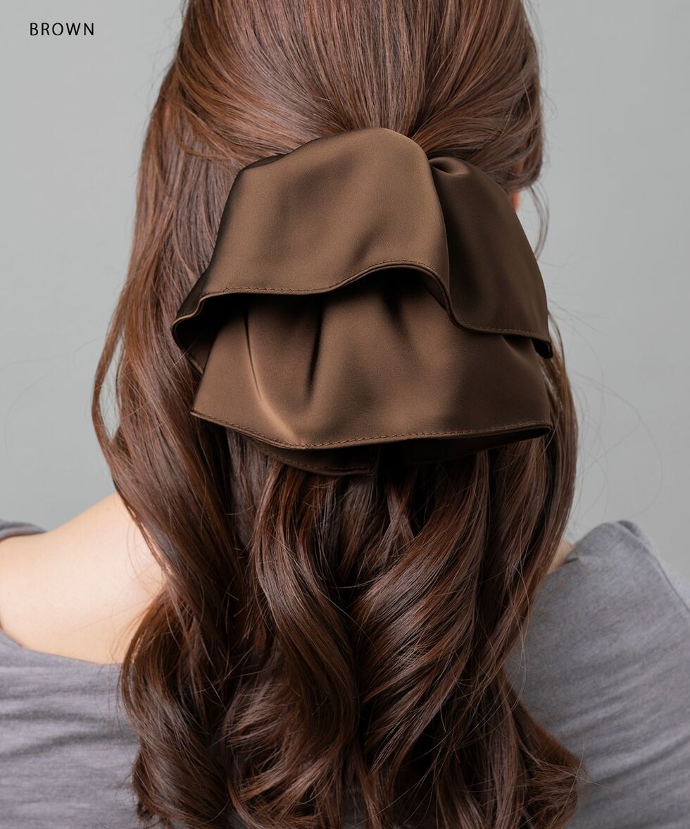 微光沢の滑らかサテン調フリルのバンスクリップ。サラリと柔らかな素材を重ねた二層フリルが、ふんわりとしたボリュームとエレガントな立体感を演出します。まとめ髪を一気に垢抜けさせる主役級アイテムです。