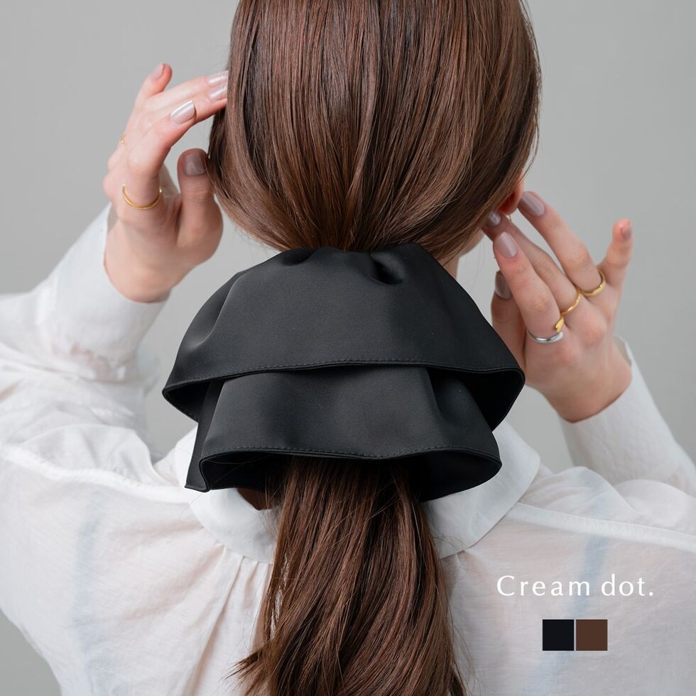 ヘアアクセサリー レディース バンスクリップ ヘアクリップ サテン調 微光沢 フリル 二層 しっかり留まる ボリューム ワンタッチ ゴム隠し ヘアアクセ ヘアアレンジ 簡単 挟むだけ まとめ髪 髪留め ブラウン cream dot 定形外郵便 [ブラック_ワンサイズ]