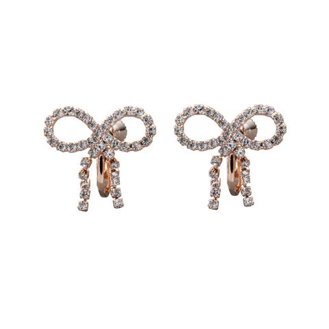 ピアス イヤリング レディース ネジ式 リボン ビジュー 揺れる ブラック cream dot ゆうパケット [ピンクゴールド×クリア_イヤリング]