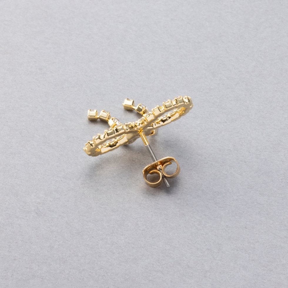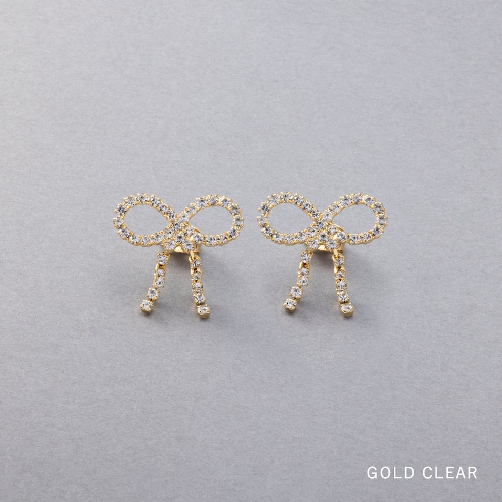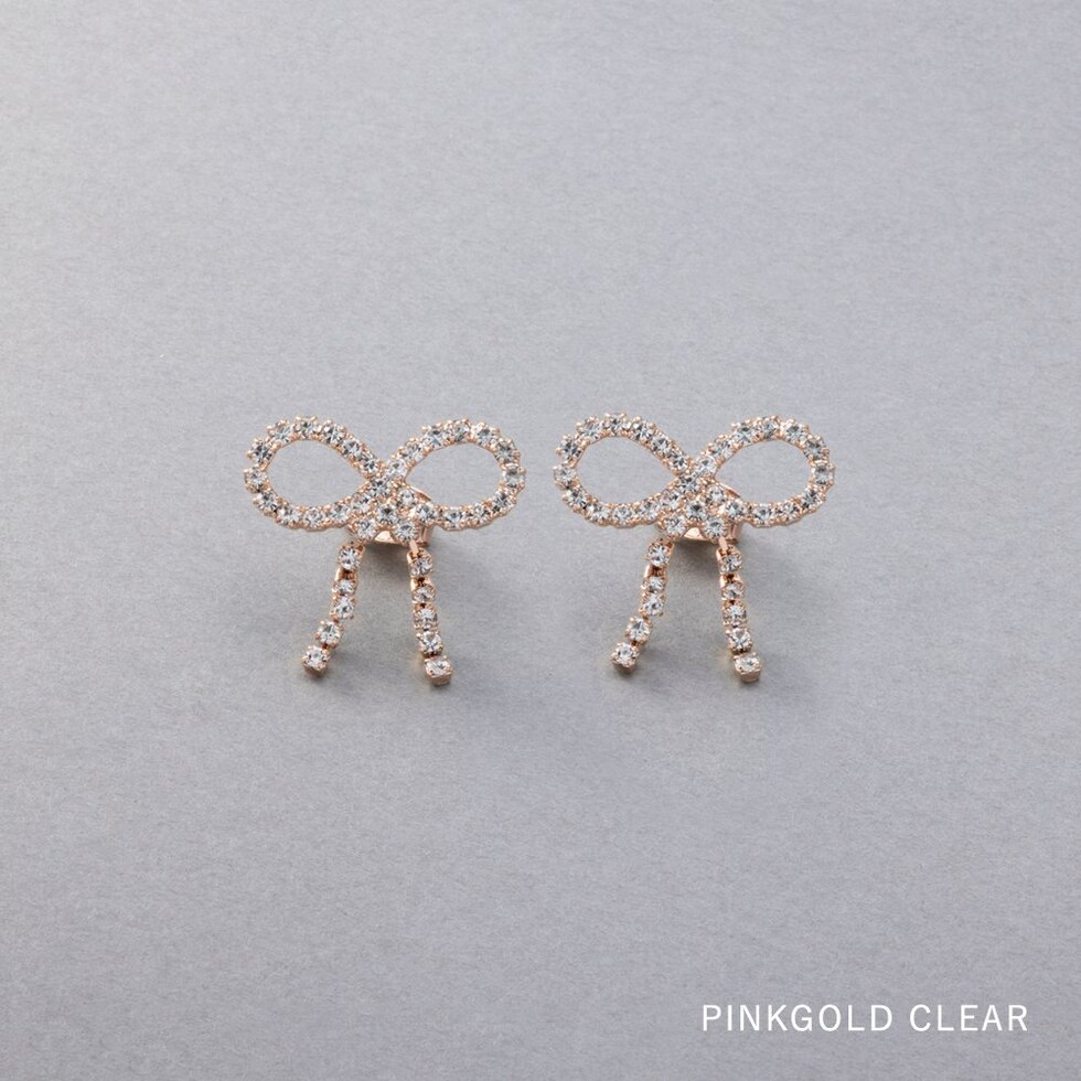 ピアス イヤリング レディース ネジ式 リボン ビジュー 揺れる ブラック cream dot ゆうパケット [ピンクゴールド×クリア_ピアス]