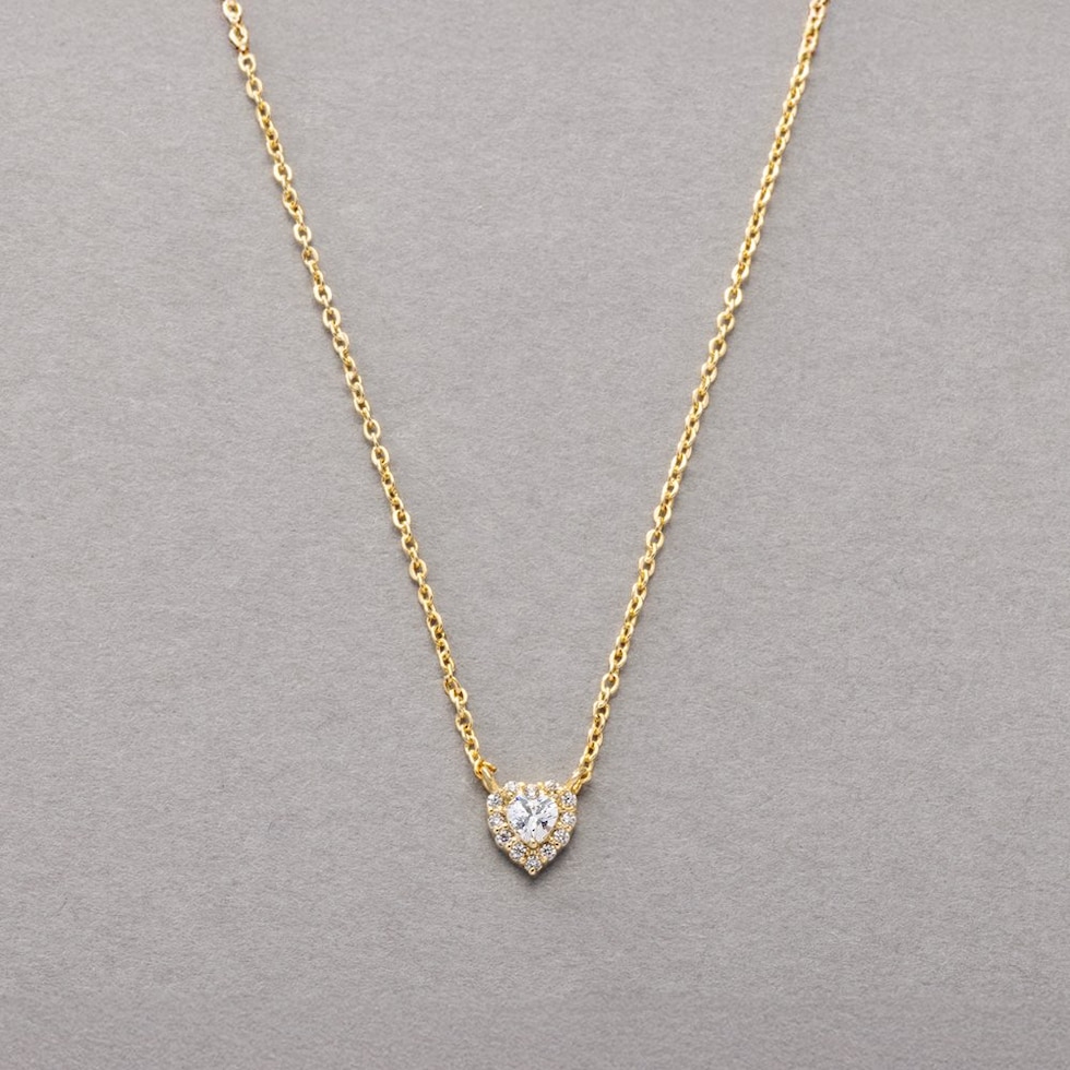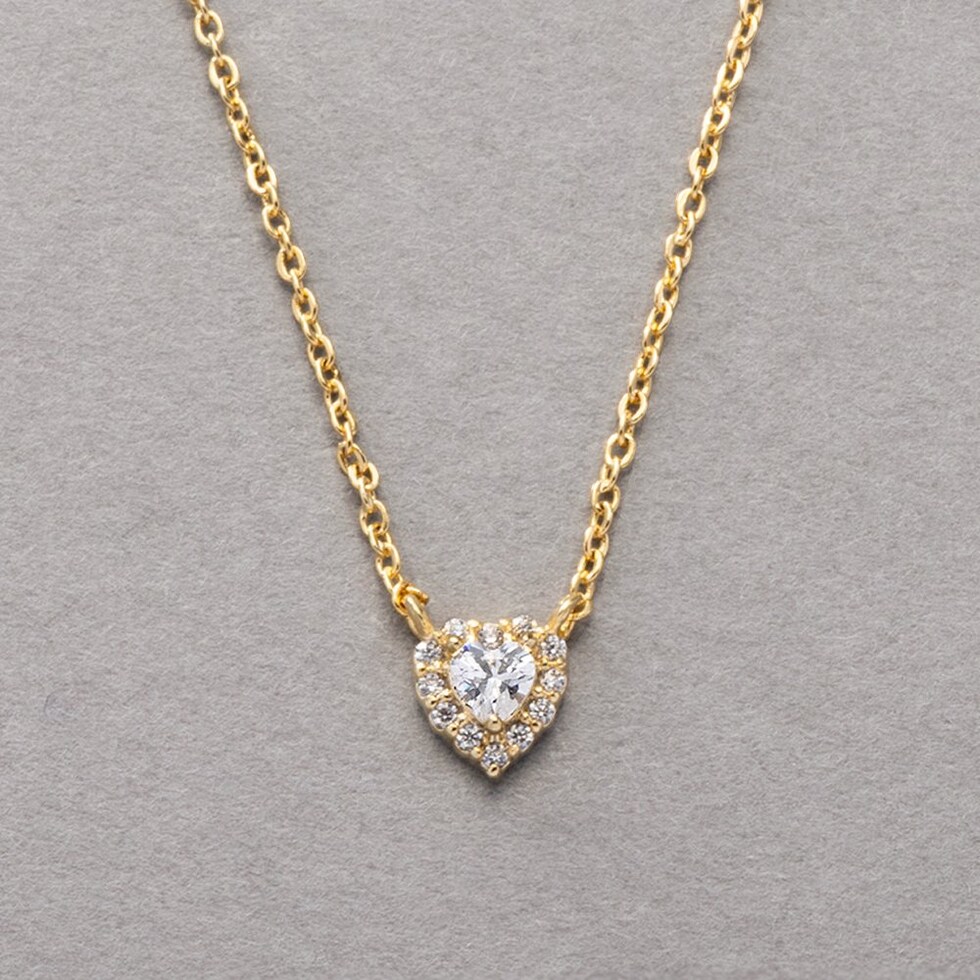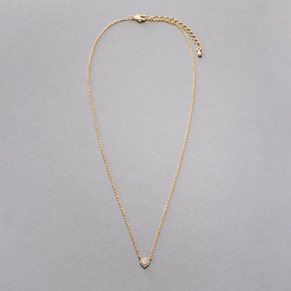 小粒なハートモチーフが煌めくビジューネックレス。合わせやすいサイズ感で品良く煌めいてくれるひと品。様々なシーンにマッチしてくれるオススメのアイテムです◎