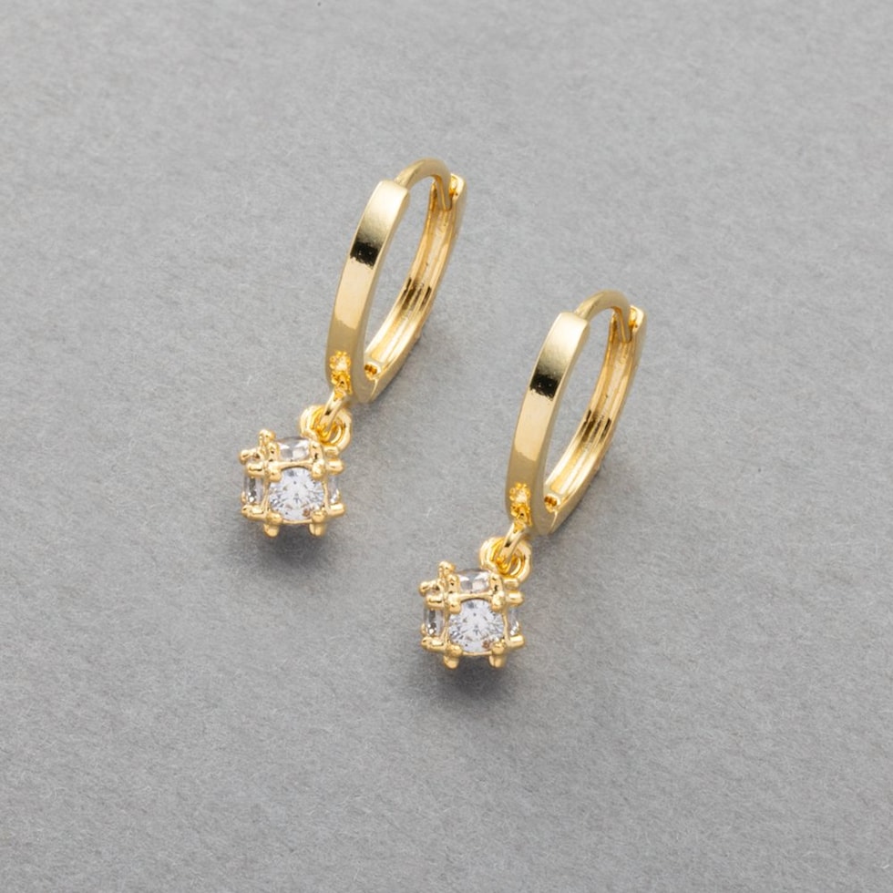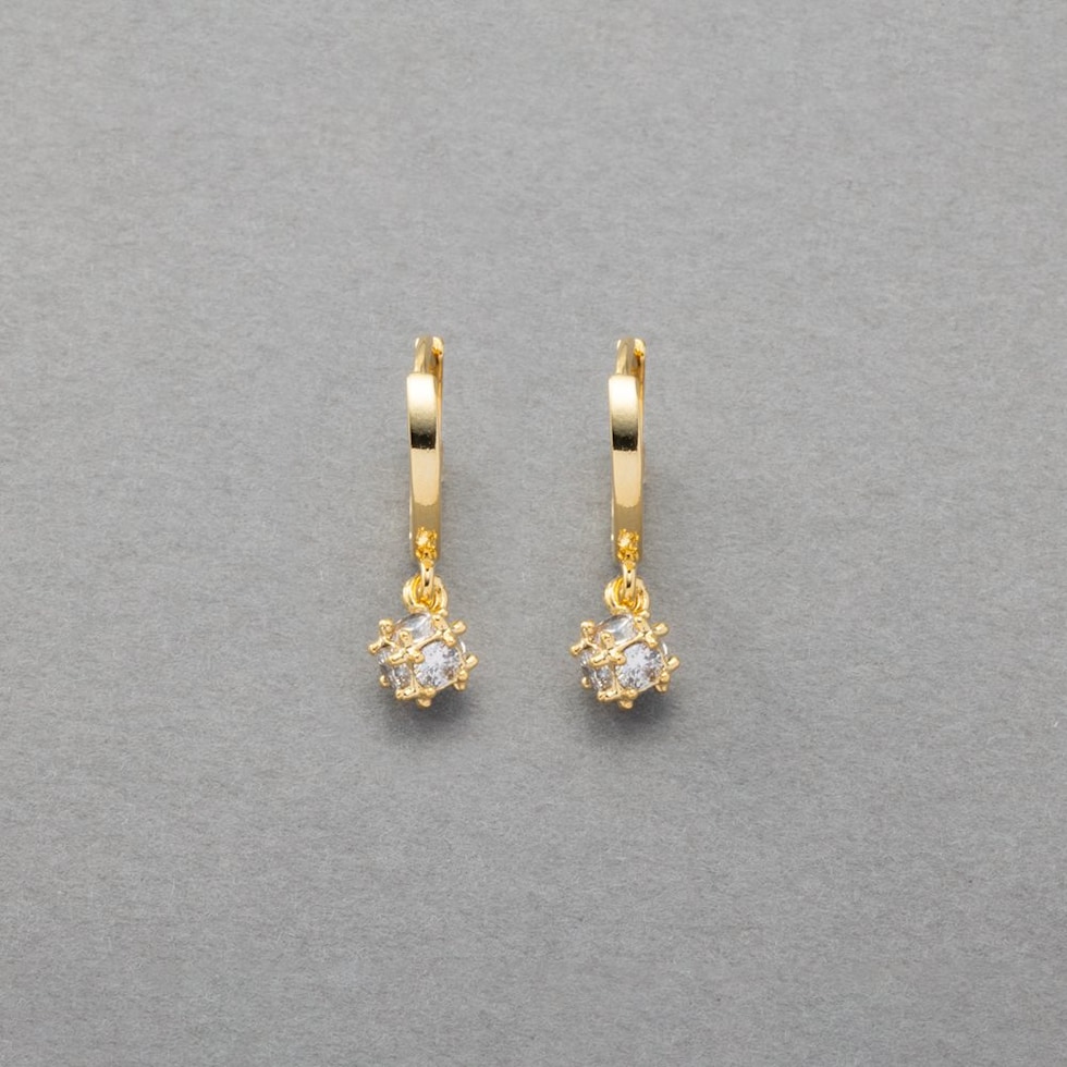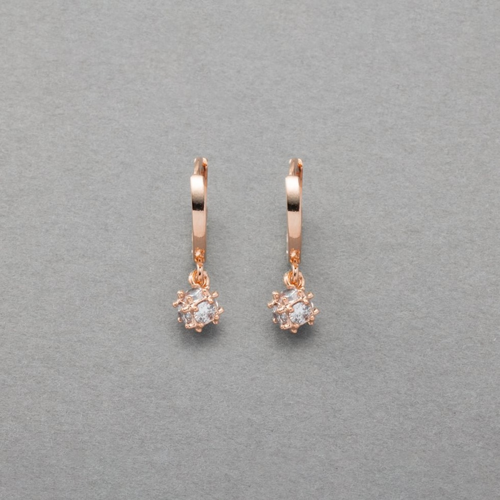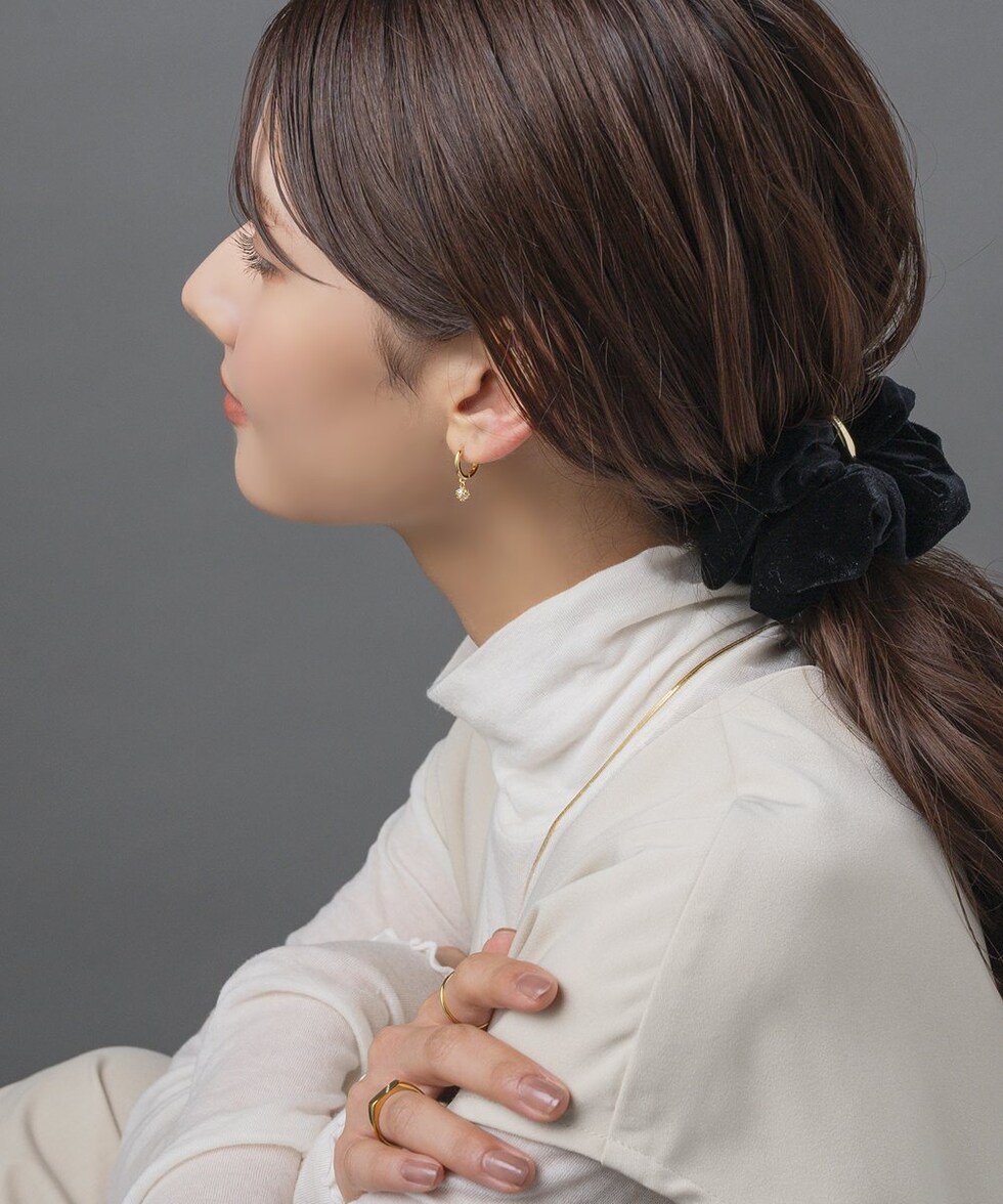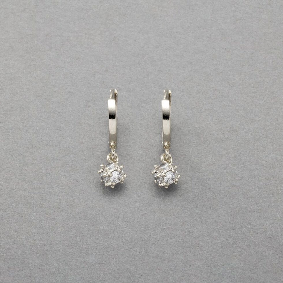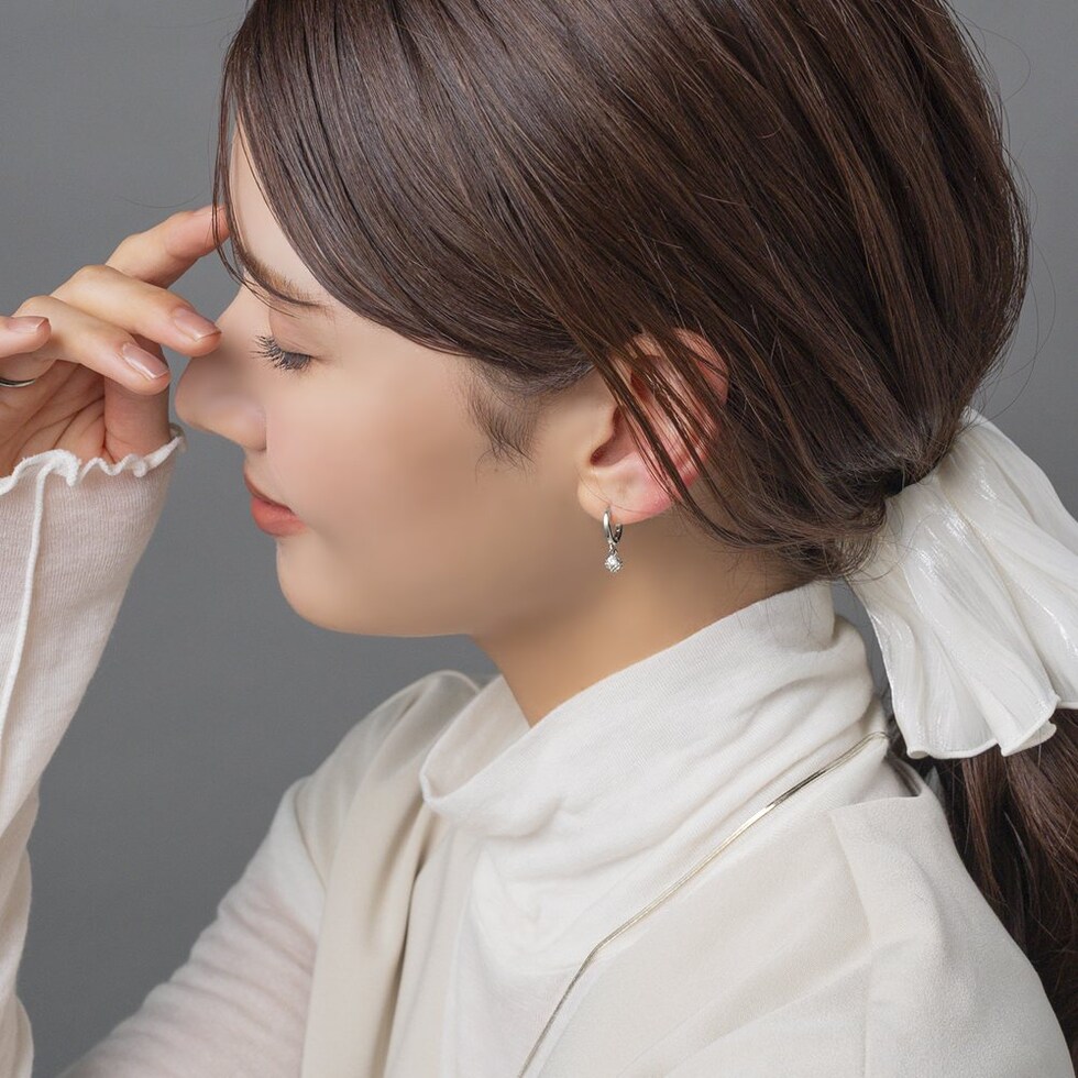 ミニマムパヴェが揺れる開閉式フープピアス。6粒の極小ジルコニアをサイコロ状にまとめたミニマムパヴェがチラチラと揺れて煌めく女性らしさ輝く逸品。カチッと留まる開閉式キャッチレスデザインで装着楽ちん◎大人コーデにひとつ加えてお顔周りを上品に飾って。