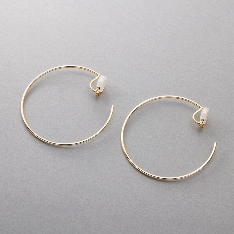 イヤリング 金属アレルギー ニッケルフリー レディース クリップ式 フープ 大きい ビッグ 細め メタル 艶 cream dot ゆうパケット [シルバー_イヤリング]