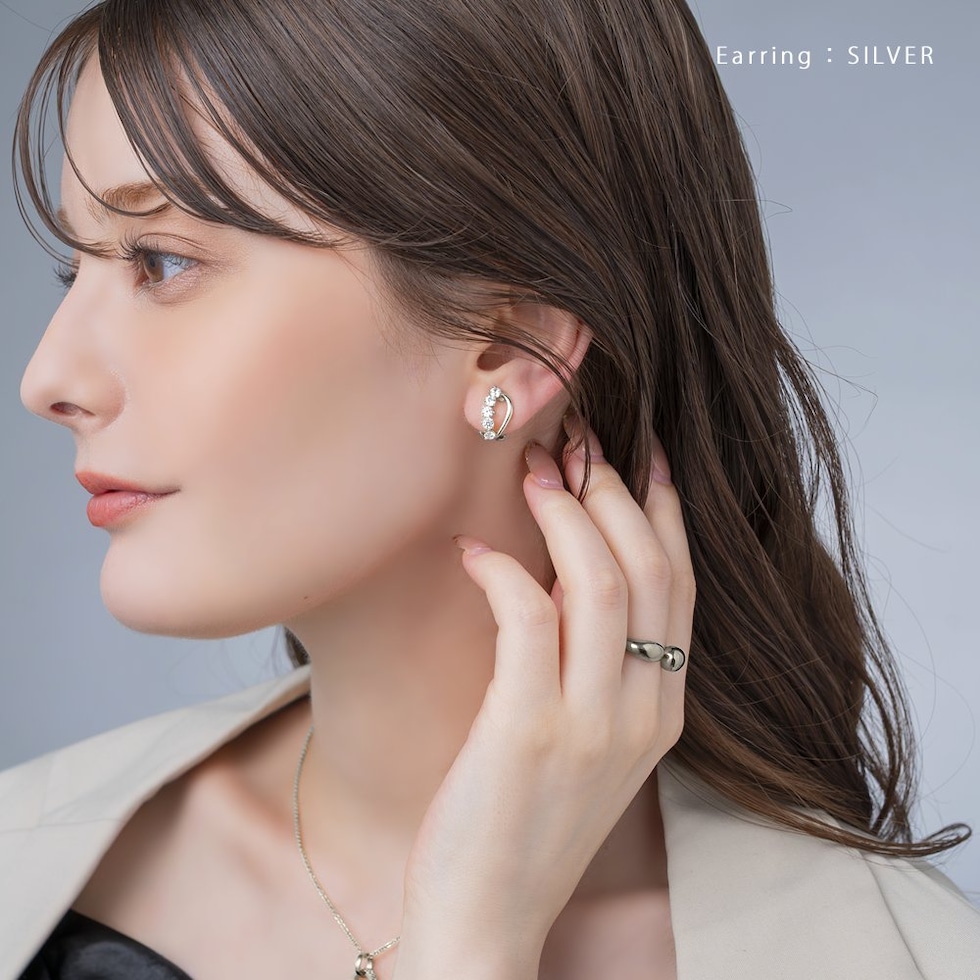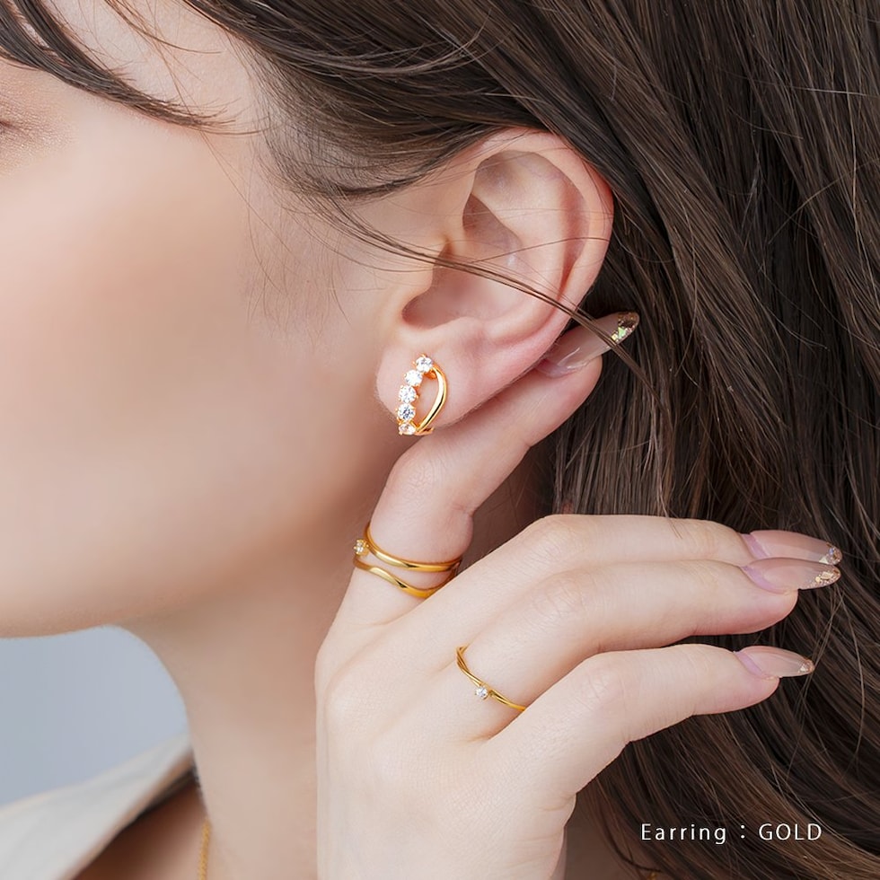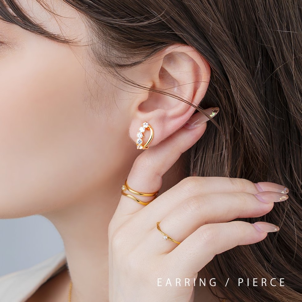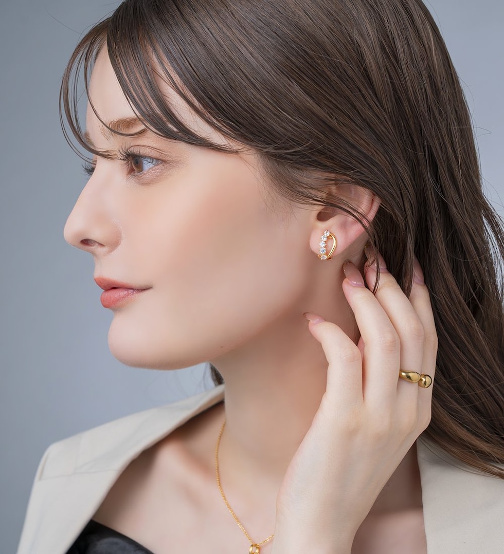 オープンアーモンドのイヤリング/ピアス。カーブラインとビジューがつくるアーモンドフォルムが耳元を女性らしい華やかな印象を演出します。どんなスタイルも品良くマッチして毎日使いに重宝しそう◎