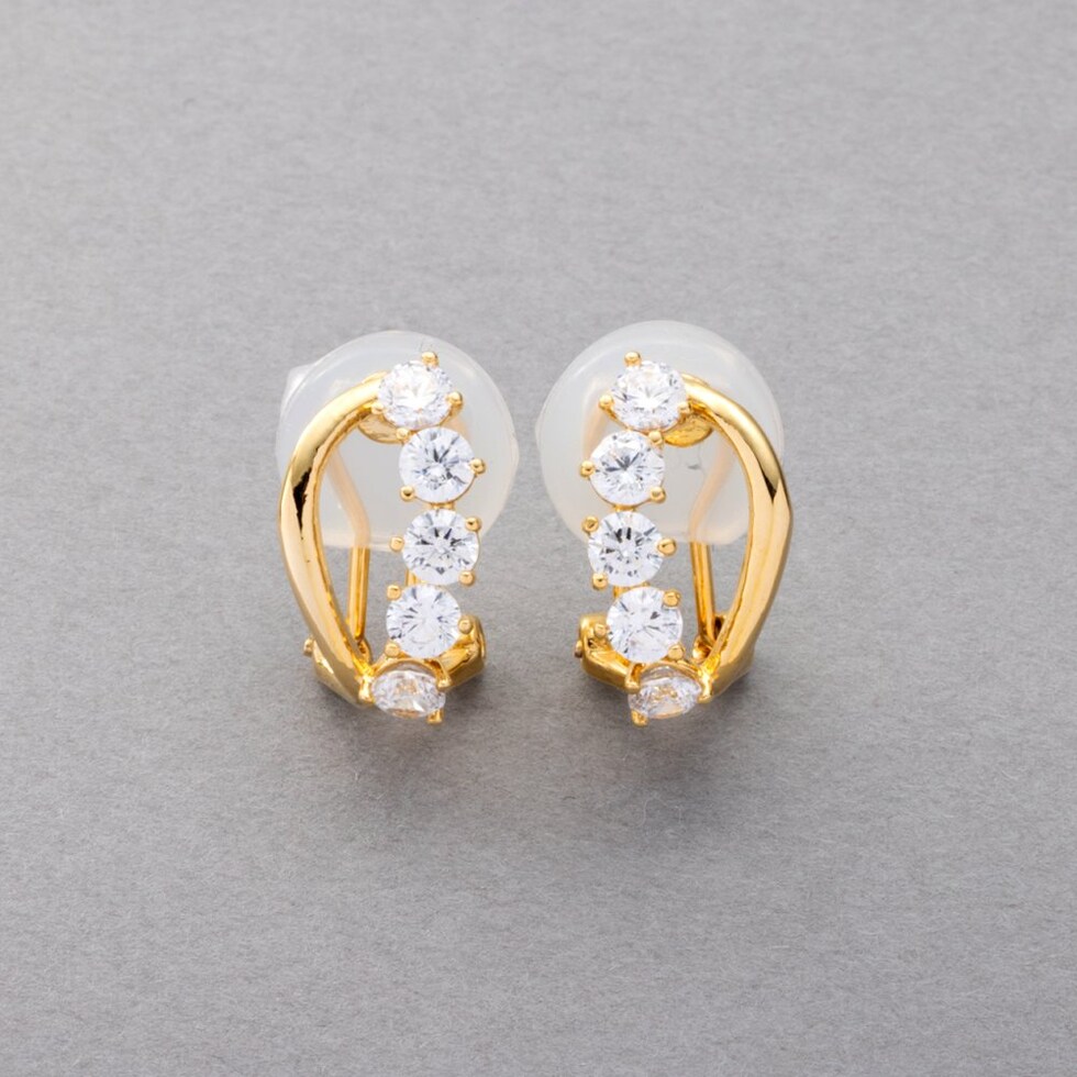イヤリング ピアス 金属アレルギー ニッケルフリー レディース クリップ式 ビジュー カーブ オープンアーモンド cream dot ゆうパケット [ゴールド_イヤリング]
