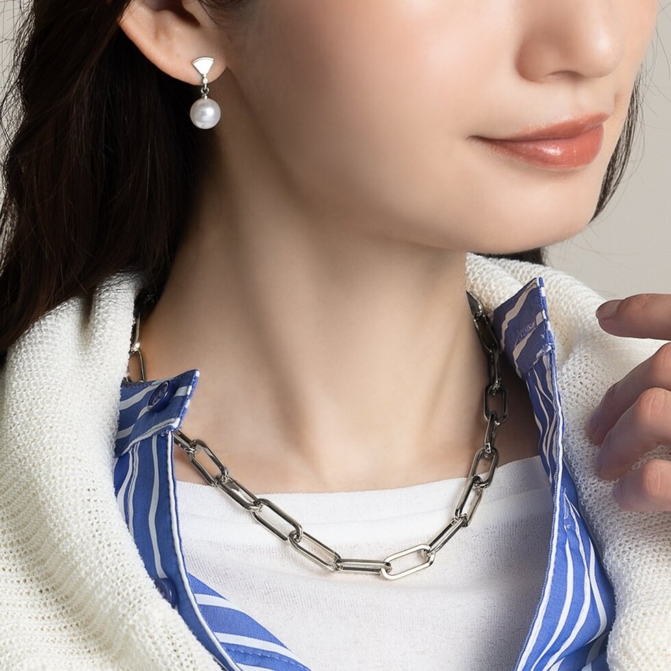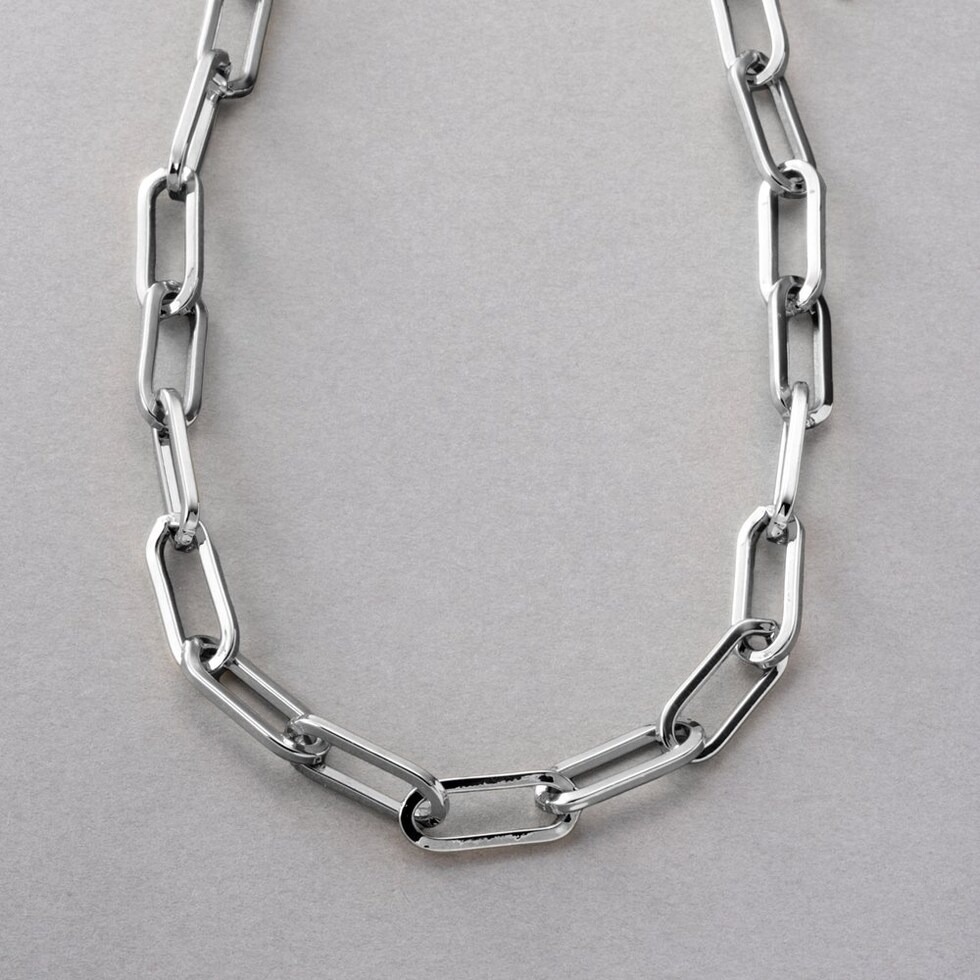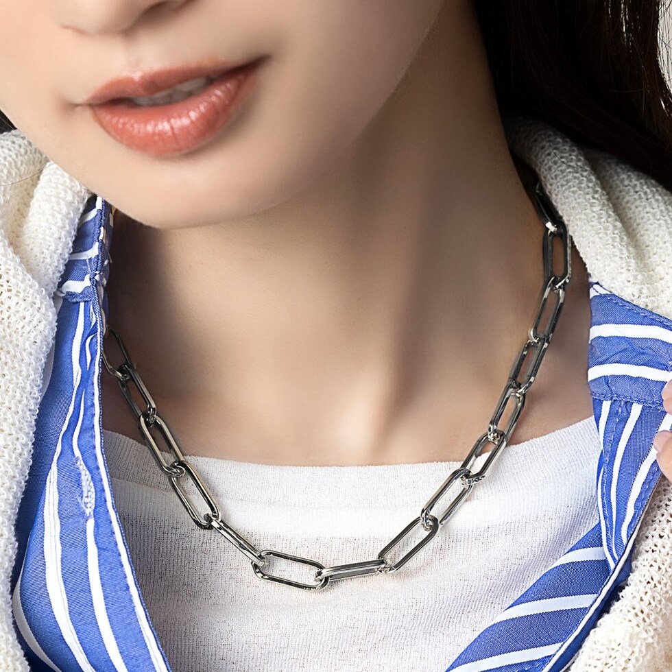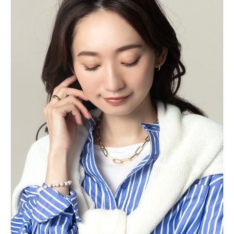 抜け感ある縦長オーバルチェーンのネックレス。艶感ある大きめデザインが、コーデをモードな雰囲気に格上げしてくれます。キレイめからカジュアルまで幅広いスタイルにマッチするアイテムです。