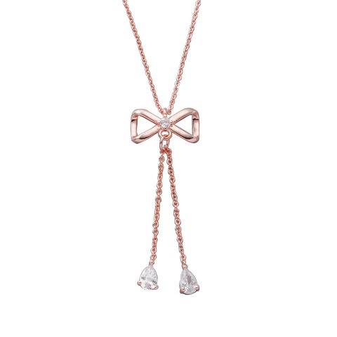 リボンモチーフの中央とエンド部分にビジューをあしらったネックレス。ティアドロップカットの煌めくビジューが胸元で揺らめき華やかな印象に◎大人の女性にも取り入れやすいモチーフがスタイリングを格上げしてくれます。