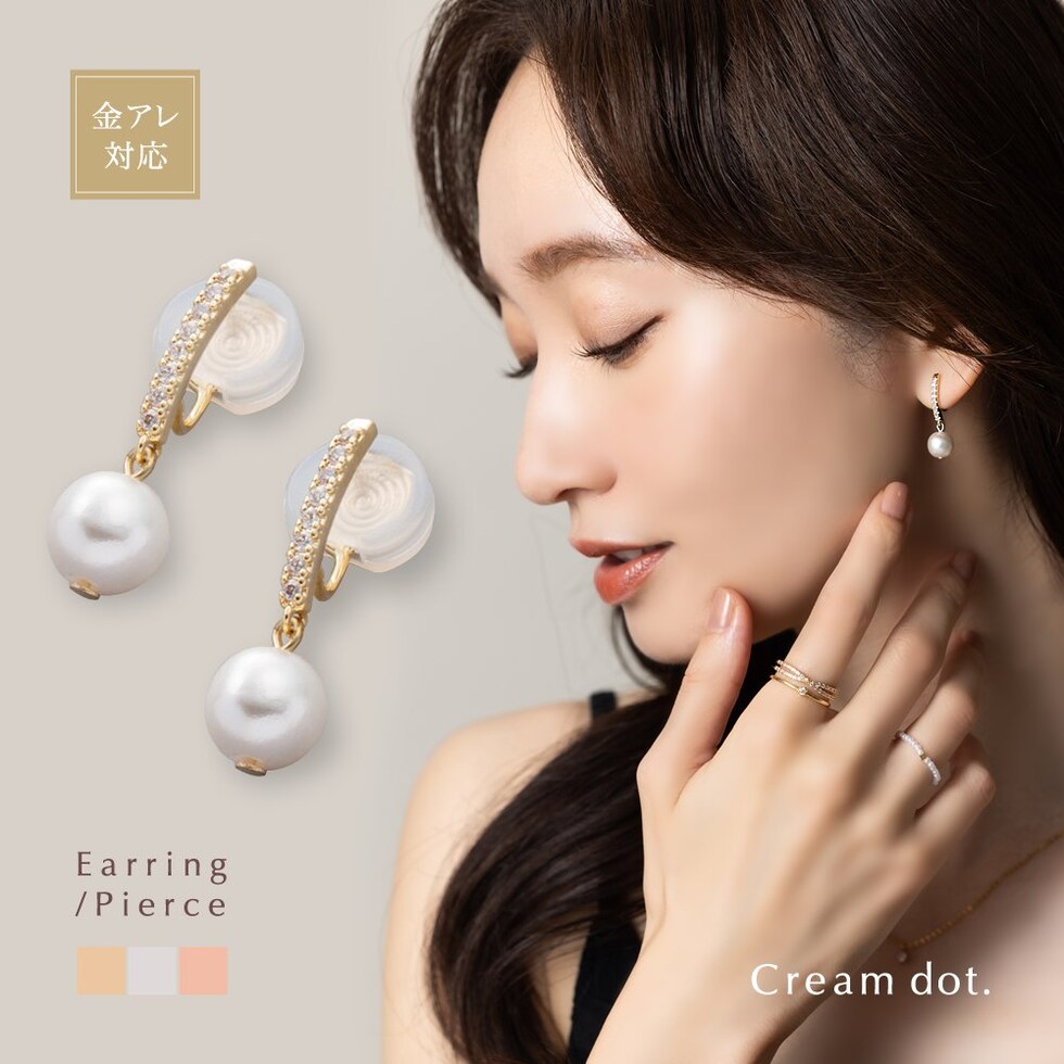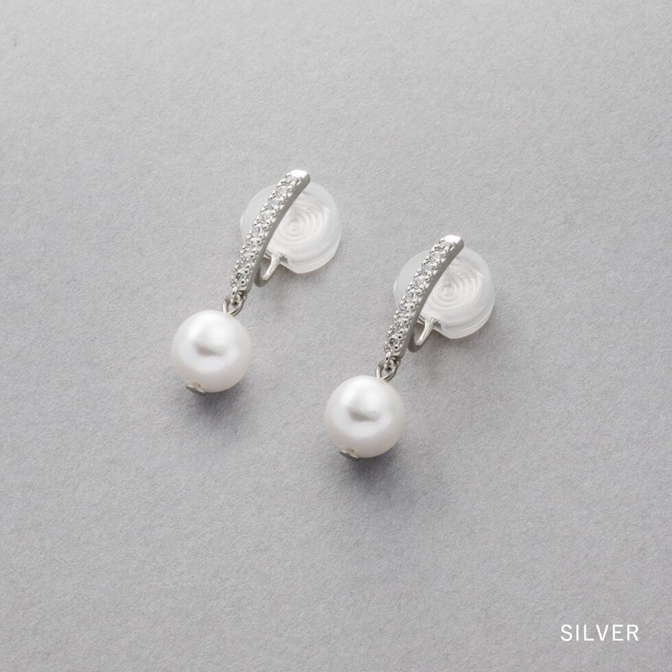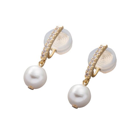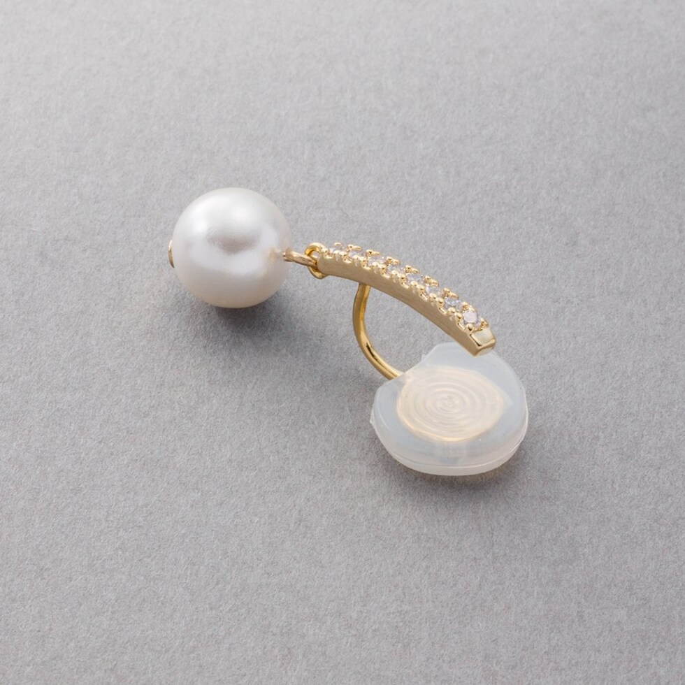 イヤリング ピアス 金属アレルギー ニッケルフリー レディース ワイヤーフィット 挟むだけ 見え シリコンカバー ビジュー パール cream dot ゆうパケット [ゴールド_イヤリング]