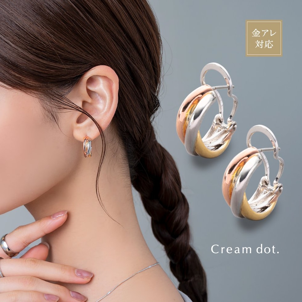 ピアス 金属アレルギー ニッケルフリー レディース キャッチレス 開閉式 ワンタッチ フープ 3連 クロス メタル 艶 cream dot ゆうパケット [ミックス_ピアス]