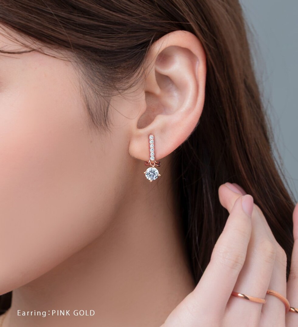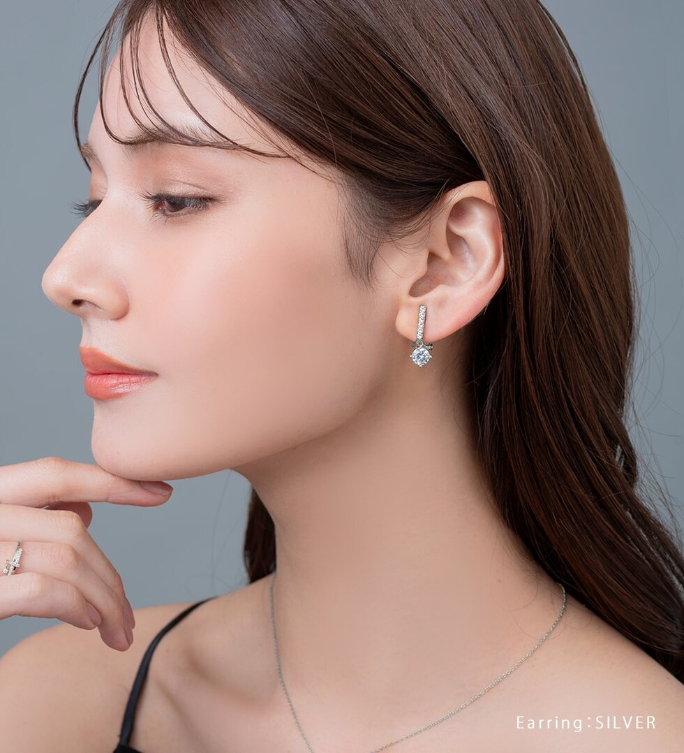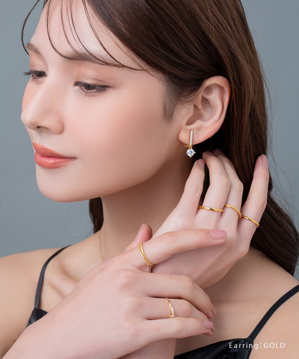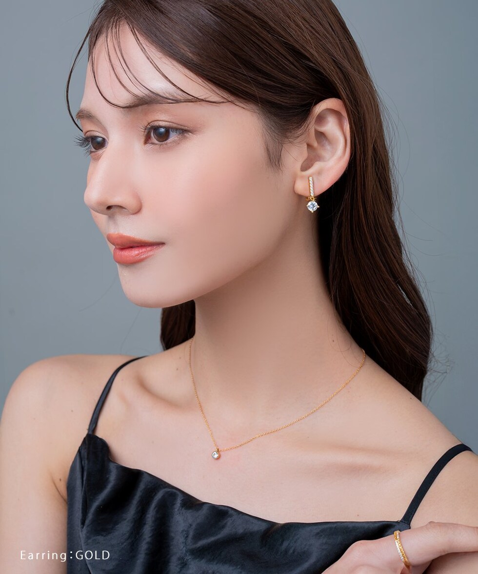 さりげなく揺れる一粒ビジューが女性らしいイヤリング/ピアス。派手過ぎないビジューラインが品の良い煌めきを演出します。顔周りをパッと華やかに印象付け、様々なシーンで活躍してくれるひと品。