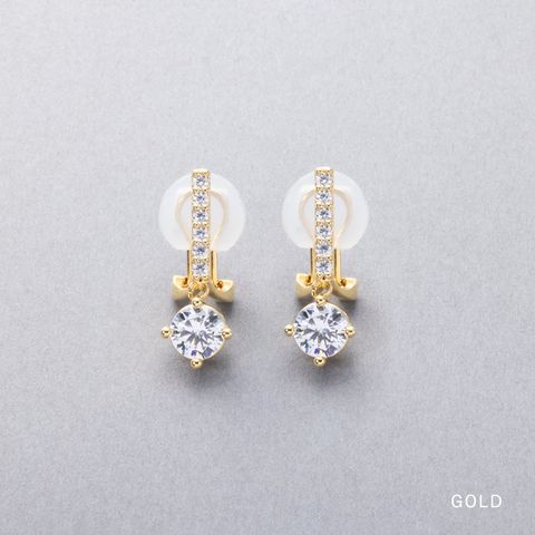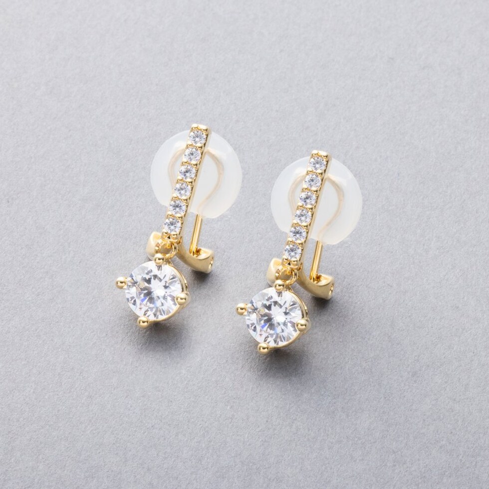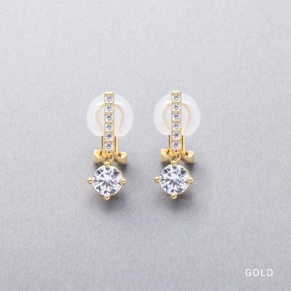 イヤリング ピアス 金属アレルギー ニッケルフリー レディース クリップ式 見え 一粒 ビジュー ライン 揺れる cream dot ゆうパケット [ゴールド_ピアス]