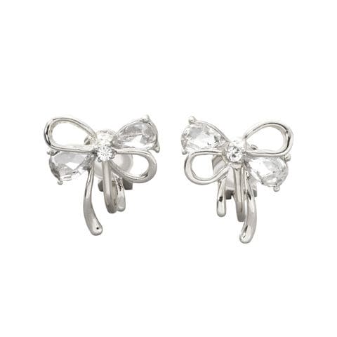 イヤリング ピアス 金属アレルギー ニッケルフリー レディース クリップ式 ビジュー ドロップ リボン アシンメトリー メタル cream dot ゆうパケット [シルバー_イヤリング]