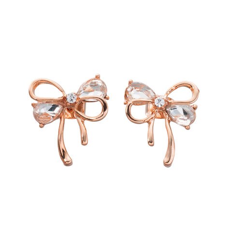 イヤリング ピアス 金属アレルギー ニッケルフリー レディース クリップ式 ビジュー ドロップ リボン アシンメトリー メタル cream dot ゆうパケット [ピンクゴールド_ピアス]