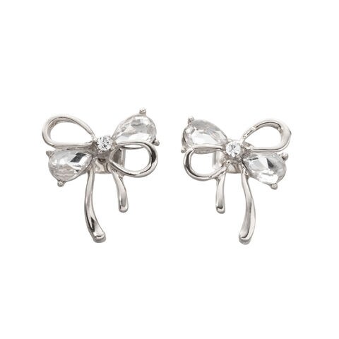 イヤリング ピアス 金属アレルギー ニッケルフリー レディース クリップ式 ビジュー ドロップ リボン アシンメトリー メタル cream dot ゆうパケット [シルバー_ピアス]
