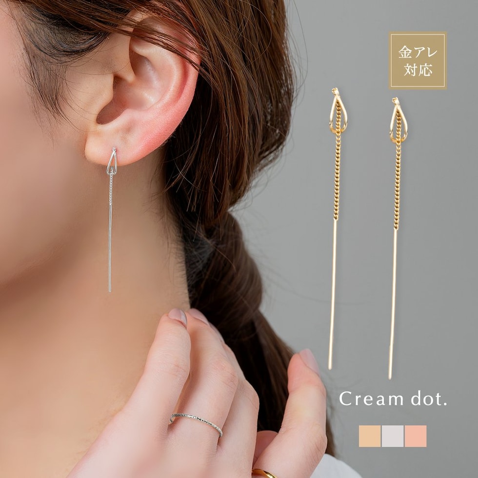 ピアス 金属アレルギー ニッケルフリー レディース アメリカン ドロップ フレーム メタル バー ライン 揺れる チェーン cream dot ゆうパケット [ピンクゴールド_ピアス]