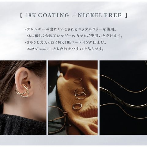 低アレルギー素材の18Kコーティング×ニッケルフリーで、金属アレルギーの方も安心してご使用いただけます。