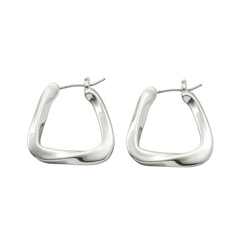 ツヤっと煌く、大人顔ワイヤーフィットイヤリング/ピアス。さりげなくツイストした台形フープが光を反射して耳元に華やぎをプラスしてくれます。どんなスタイルにも品良くマッチして毎日使いに重宝しそう◎