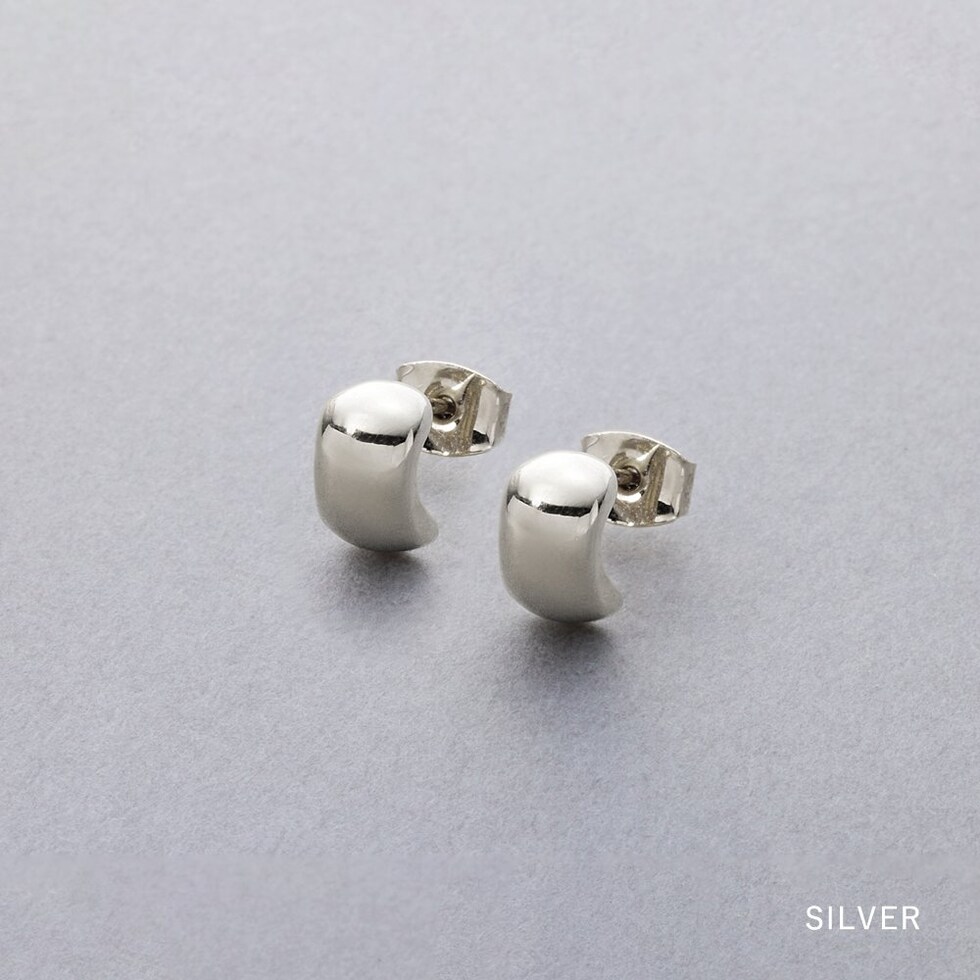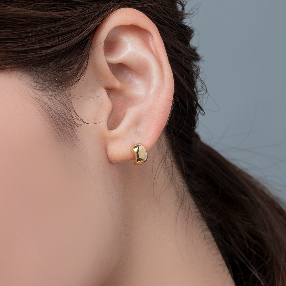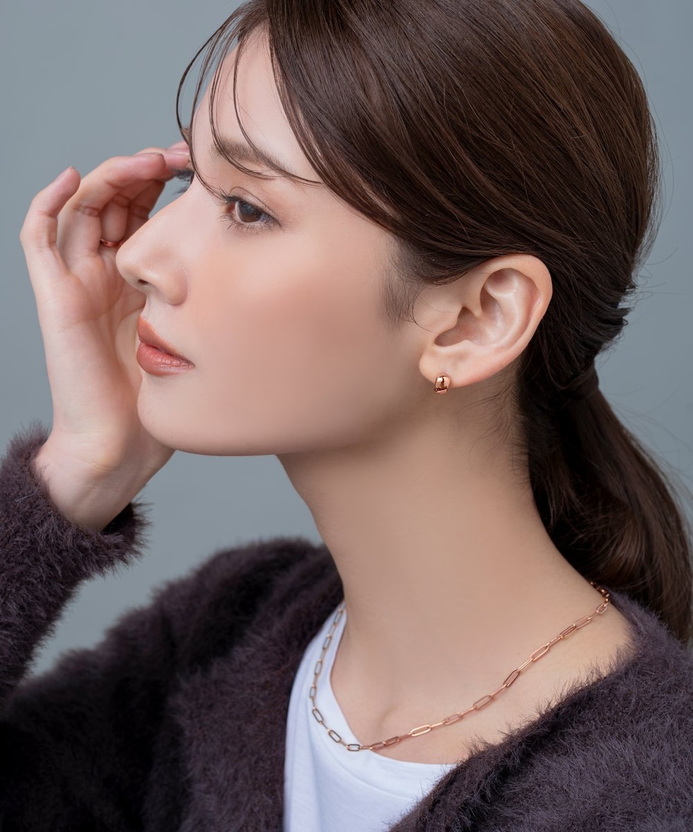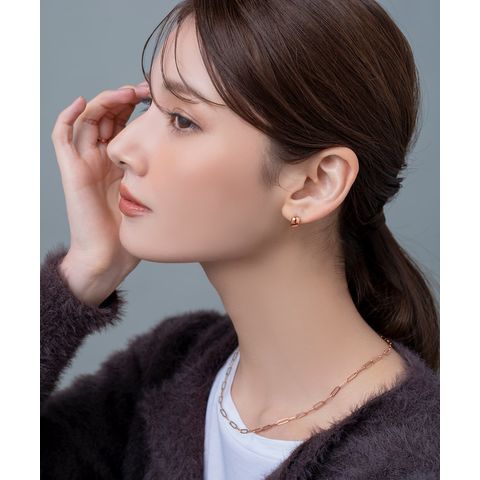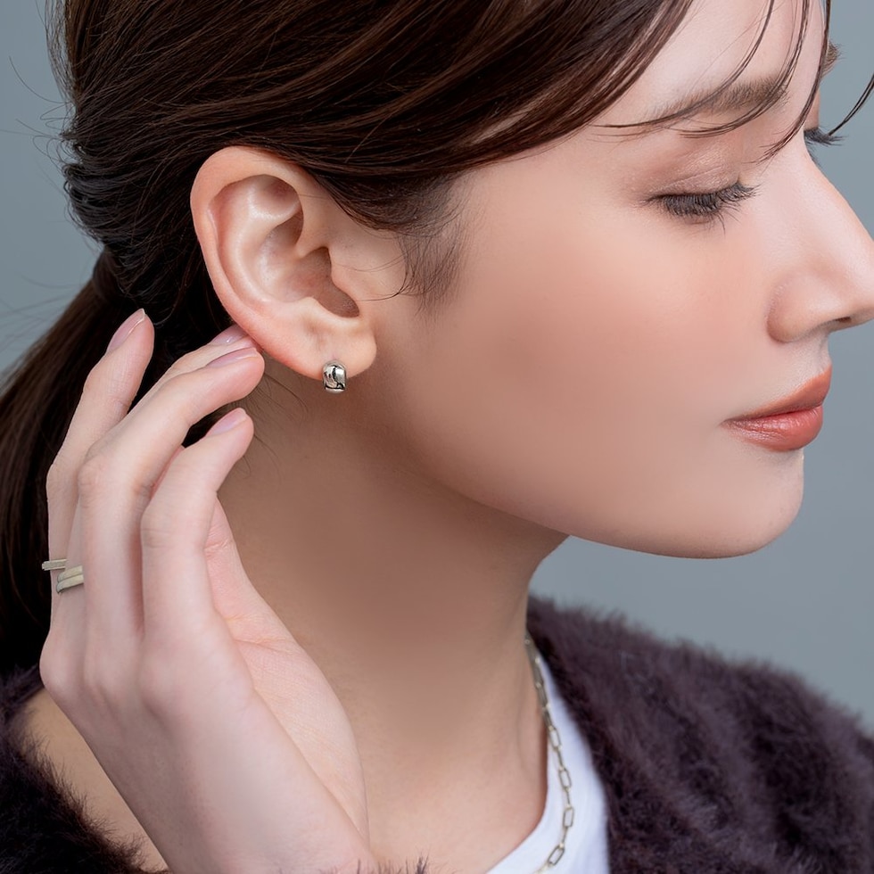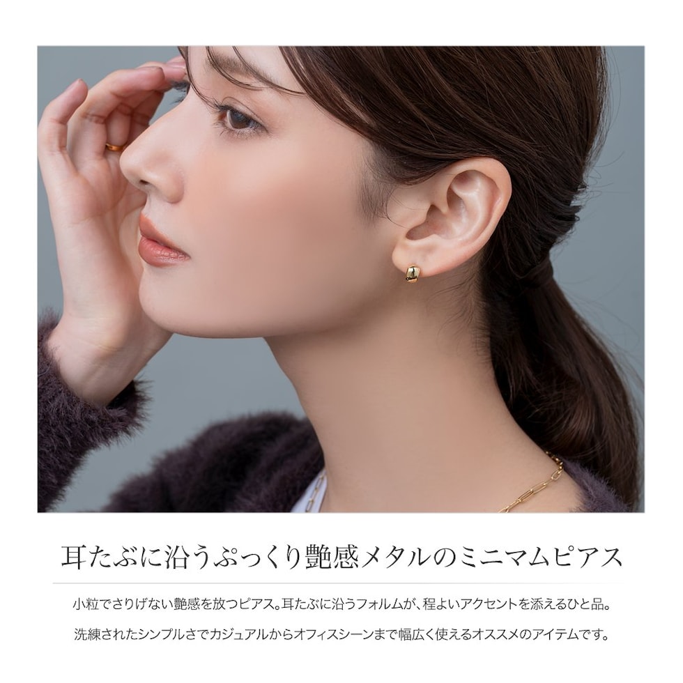小粒でさりげない艶感を放つピアス。耳たぶに沿うフォルムが、程よいアクセントを添えるひと品。洗練されたシンプルさでカジュアルからオフィスシーンまで幅広く使えるオススメのアイテムです。
