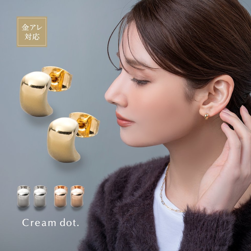 ピアス 金属アレルギー ニッケルフリー レディース メタル 艶 ぷっくり ミニ スタッド cream dot ゆうパケット [シルバー_ピアス]
