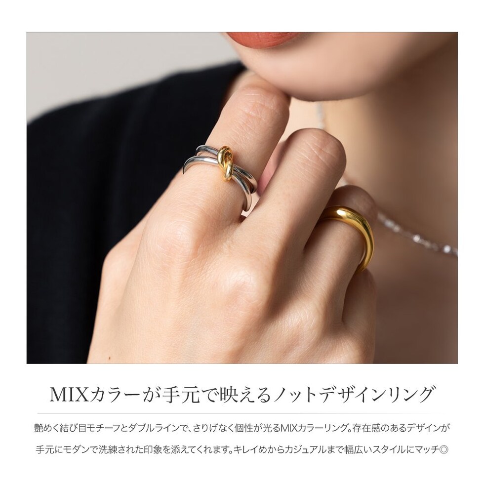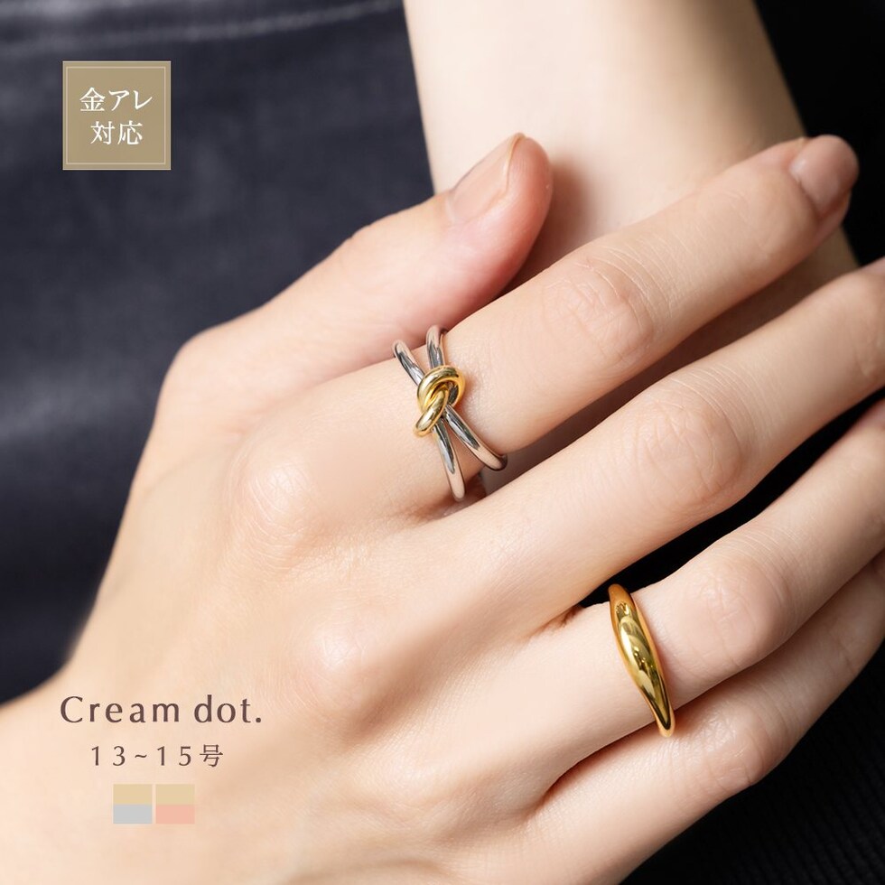 リング 指輪 金属アレルギー ニッケルフリー レディース オープンリング ノット コンビカラー メタル 艶 cream dot ゆうパケット [ミックスピンクゴールド_13号]