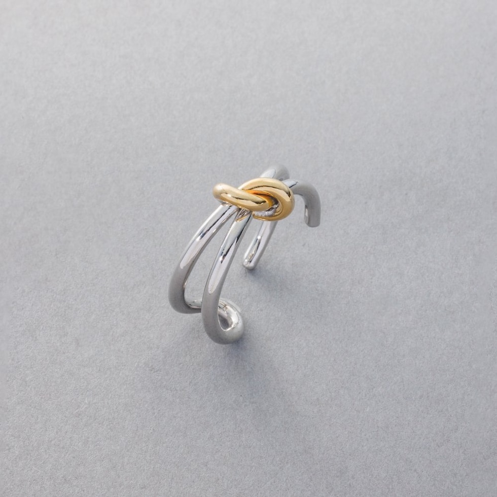 艶めく結び目モチーフとダブルラインで、さりげなく個性が光るMIXカラーリング。存在感のあるデザインが手元にモダンで洗練された印象を添えてくれます。キレイめからカジュアルまで幅広いスタイルにマッチ◎