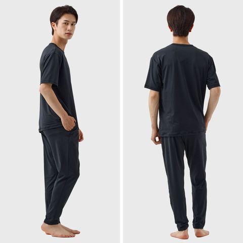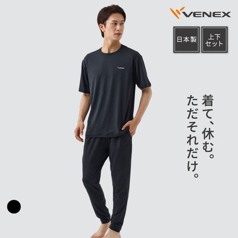 VENEX ベネクス リフレッシュ メンズ 半袖Tシャツ ロングテーパードパンツ 上下セット 全方位ストレッチ 吸水速乾 ポケット付 ブラック L