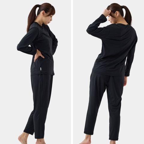 VENEX ベネクス リフレッシュ レディース 長袖Tシャツ 8分丈パンツ 上下セット 全方位ストレッチ 吸水速乾 ポケット付 ブラック L