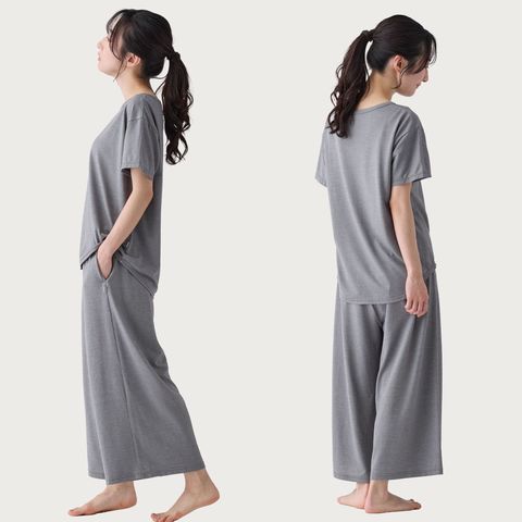 生地にほどよいハリ感を持たせたことにより、身体のラインを拾いにくくなり、よりリラックスして着られるシルエットになりました。