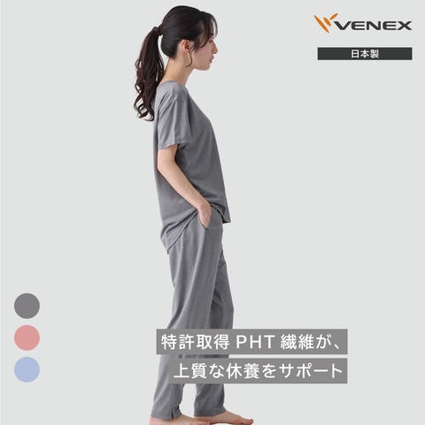 ベネクス リカバリーウェア リカバリークール+ ショートスリーブ ロングテーパードパンツ レディ-ス 上下セット 母の日 接触冷感 高通気 グレー L