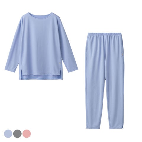 ベネクス リカバリーウェア リカバリークール+ サイドスリットロングスリーブ ロングテーパードパンツ レディース 上下セット 母の日 接触冷感 高通気 サックス M