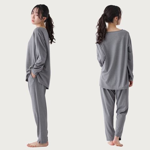 生地にほどよいハリ感を持たせたことにより、身体のラインを拾いにくくなり、よりリラックスして着られるシルエットになりました。